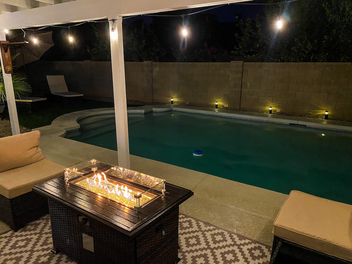 Welcome to the Handcrafted Home in the desert. There is a large outdoor area with a heated pool, bbq, and propane fire table. The heating of the pool is included in the cost of your stay from October-May. You will enjoy entertaining in the fully equipped chef’s kitchen with updated appliances and an air fryer in the oven. The comfy beds are memory foam and the bathrooms are both updated. Skip the game day/concert traffic and opt for an easy walk. We are located 0.8 miles from State Farm Stadium.