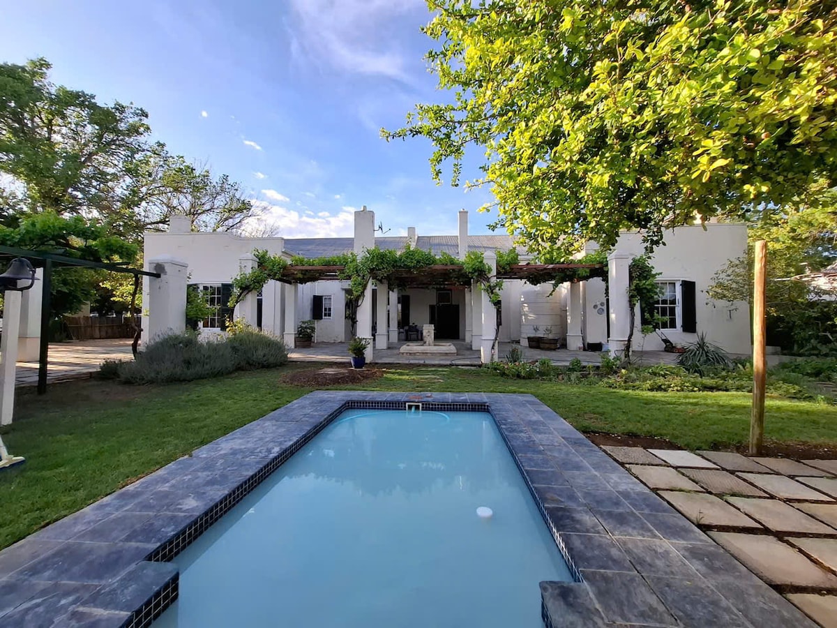 Denne kærligt restaurerede, fredede Cape-hytte i hjertet af Graaff-Reinet er det perfekte sted til en Karoo-ferie med venner eller familie. Med to rummelige soveværelser med eget badeværelse, ekstra badeværelse, fuldt udstyret køkken, stue og udendørs siddeområde kan du både underholde og slappe af efter hjertets lyst. Poolen er et særligt stort hit om sommeren! Beliggende i byens eftertragtede "hestesko", er du kun en kort gåtur væk fra mange gode restauranter og butikker.