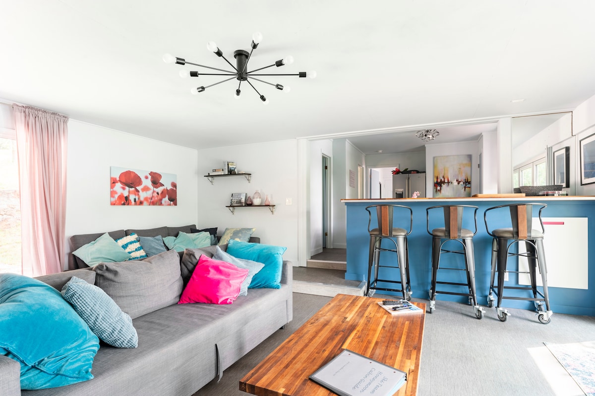 Det nederste dæk på Wet Feet Retreat er en privat lejlighed ved søen, der kun er tilgængelig uden for sæsonen. Den er ideel til en rolig smuttur eller et kortvarigt ophold og har et soveværelse med queensize-dobbeltseng, smart-tv, højhastighedsinternet, en hyggelig stue og spisestue og et tekøkken med vask, kompakt køleskab, mikrobølgeovn, airfryer og induktionskomfur. Omfatter privat vaskeri, brusekabine, gratis parkering, adgang til kaj, kajakker og en privat terrasse med bålplads. Fælles HVAC indstillet til 70°.