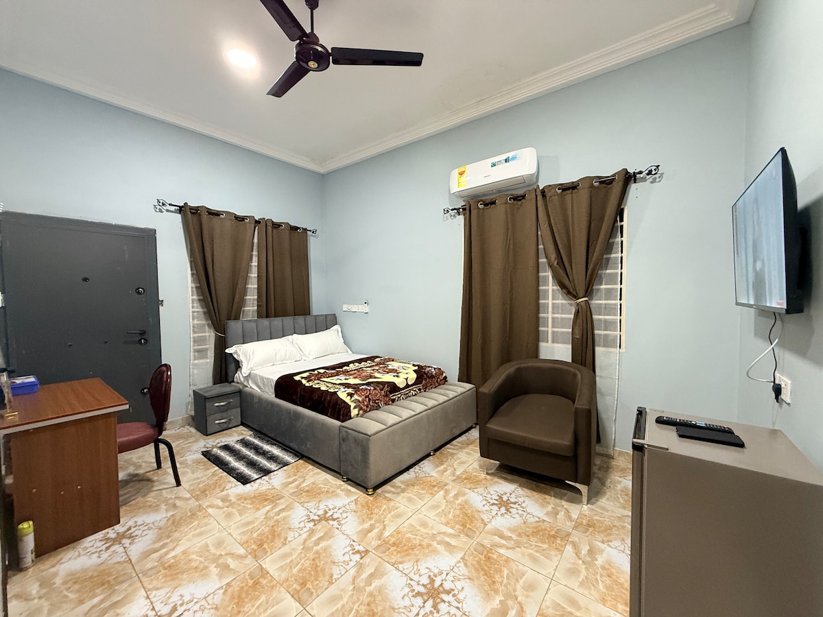 Denne unikke bolig har sin helt egen stil. Føl dig hjemme i vores hyggelige, moderne lejlighed i det maleriske hjertet af Sunyani. Vi har 1- og 2-værelseslejligheder til rådighed for dine forretnings- og familierejser. Lejligheden har hyggelige soveværelser med pæne og hygiejniske badeværelser og en dejlig stue, gratis højhastigheds-Wi-Fi, fuldt udstyret køkken med vaskemaskine, tv med internationale kanaler, aircondition og et nyt moderne interiør. Intakt belysning og sikkerhed om aftenen.