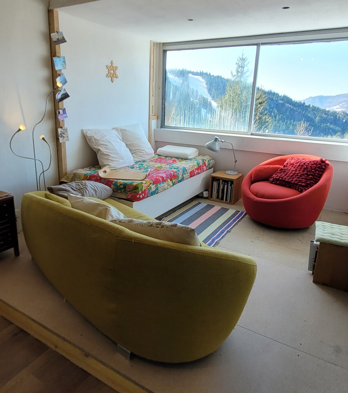 40m2 sydvestlig beliggenhed: entré, stue med køkken, dobbelt loggia med sofa, 1 soveværelse, dobbeltseng, enkeltseng, udtræksseng, 1 badeværelse Perfekt til 1 til 3 personer, muligvis 5 Beliggende i en meget stille ejendom i det skovklædte område Rocher du Cerf, tæt på vandrestier, 200 m fra ski-/mountainbike-pister > Privat parkeringsplads stedets ulemper: > Ingen kaffemaskine > Sengetøj og håndklæder medfølger ikke Ingen ekstra rengøring, men jeg ville være taknemmelig, hvis du efterlader lejligheden ryddet og ren