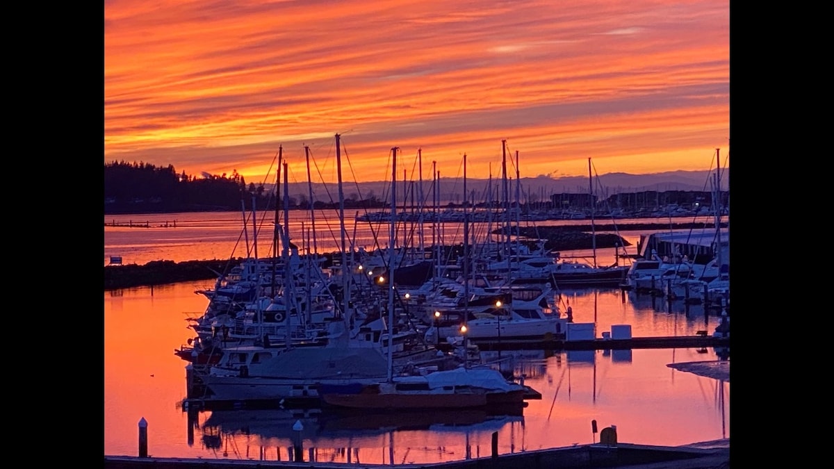 Luksus havudsigt 2 soveværelser lovlig suite med panoramaudsigt over hav, bjerge og golføer. To blokke gang til East Beach. En spektakulær sandstrand og strandpromenade, der forbinder dig med West Beach og den berømte White Rock Pier. Der er mange restauranter og søde små butikker at nyde. 5 minutter fra USA's grænse og Peace Arch Hospital. Offentlig transport en blok væk. Gratis parkering med tilladelse. Privat indgang til selvstændig suite i en bolig.