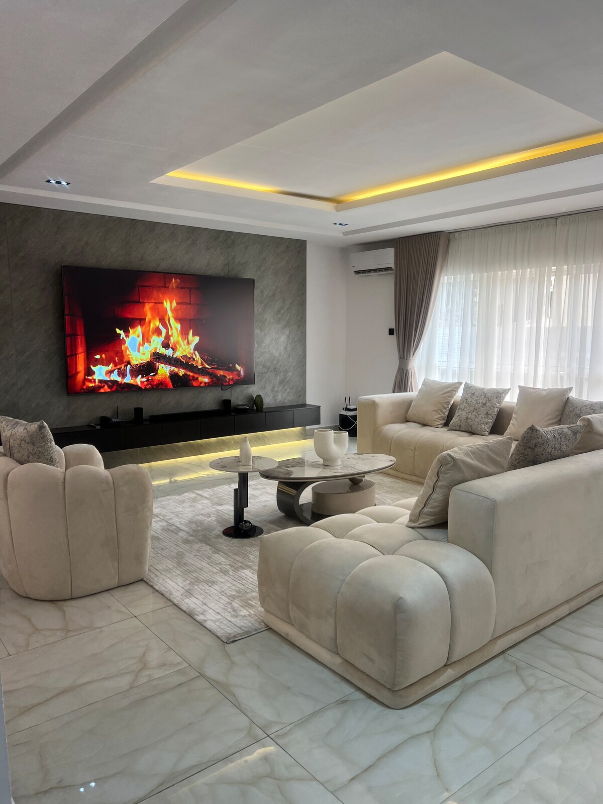 Nyd et smukt indrettet opholdssted med 3 soveværelser i en rolig del af Victoria Island. Med strøm døgnet rundt, topsikkerhed, blødt sengetøj og et kæmpe 100-tommers tv er det nemt at føle sig godt tilpas. Det rummelige fælles køkken er perfekt til madlavning med familie eller venner, og det lyse, luftige interiør sikrer et fredeligt ophold, du aldrig vil fortryde at booke.