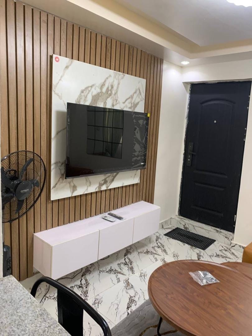 Oplev komfortabel og praktisk bolig i hjertet af Surulere. Denne moderne minilejlighed med et soveværelse har alle fornødenheder til en problemfri livsstil. Nyd pålidelig strømforsyning døgnet rundt med et dedikeret inverter-system, højhastighedsinternetadgang, køkken og badeværelse.