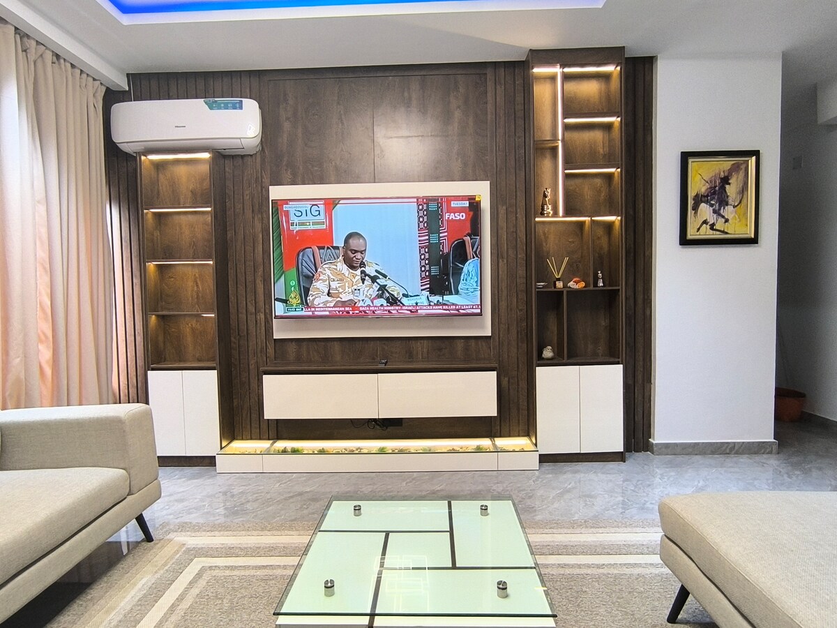 Denne moderne lejlighed med indtjekning uden vært nær Lagos lufthavn er dit perfekte hjem væk fra hjemmet. Lejligheden er innovativt designet til at have alt komfort og bekvemmelighed til dit behov. Med moderne faciliteter, 55" smart-tv, gratis wi-fi, 24/7 strømforsyning og nem indtjekning er det ideelt til solorejsende eller par. Beliggende i et roligt/fredeligt lukket boligområde i Ajao Estate med nem adgang til alle hotspots. Book nu for en problemfri, behagelig oplevelse 2 minutter fra lufthavnen.