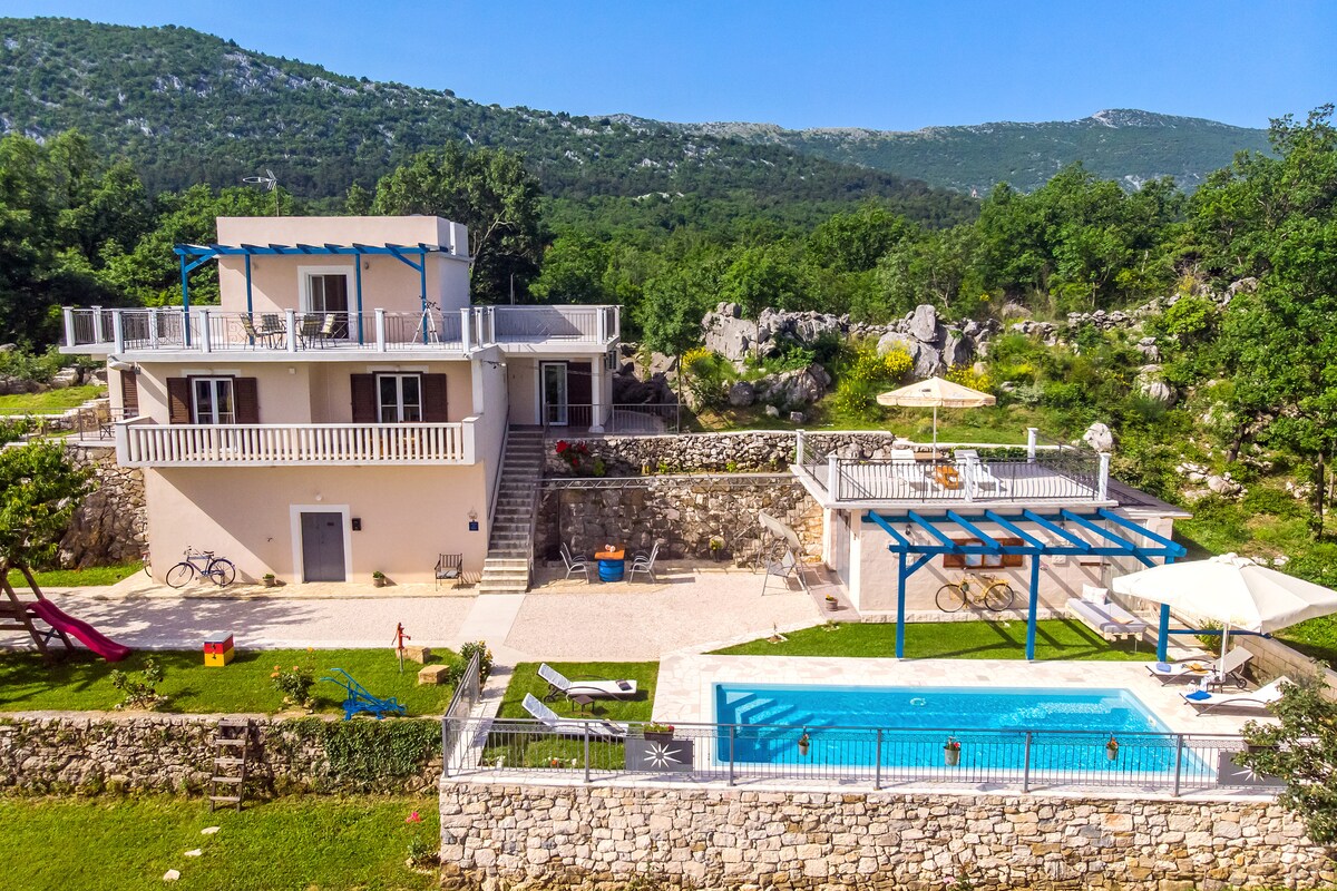 Villa Natura ligger i en smuk grøn oase i den lille landsby Kučići. Fredfyldt, smuk natur og dejlig køkkenhave med kirsebærtræer kun til dig vil give en perfekt afslappende ferie. Villaen er velegnet til 6 personer, indeholder: 3 soveværelser, 2 badeværelser og 1 toilet, store terrasser og balkoner, køkken med stue. Udendørsområdet tilbyder en stor pool og spiseplads.