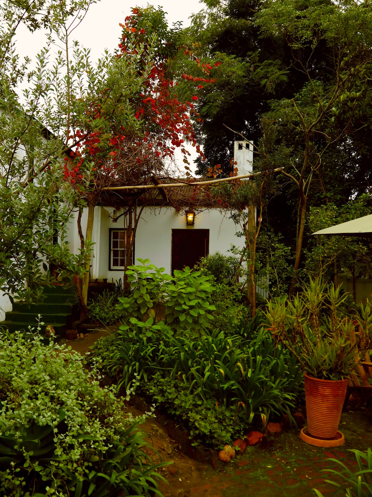 Find en dejlig rolig privat havehytte under et gammelt yellowwood-træ. Vi får besøg af en række fuglelyde og tidlige morgenkyllinger, der galer for at minde dig om livet på landet, når det er bedst. Vi vil gerne tilbyde dig en guidet fugletur eller bjergvandringer til Marloth-vandfaldet eller Bontebok Park-safari på de betagende Breede River-banker. Swellendam er en smuk by, som vi er stolte af. Jeg håber, at du vil booke og nyde dit ophold hos os.