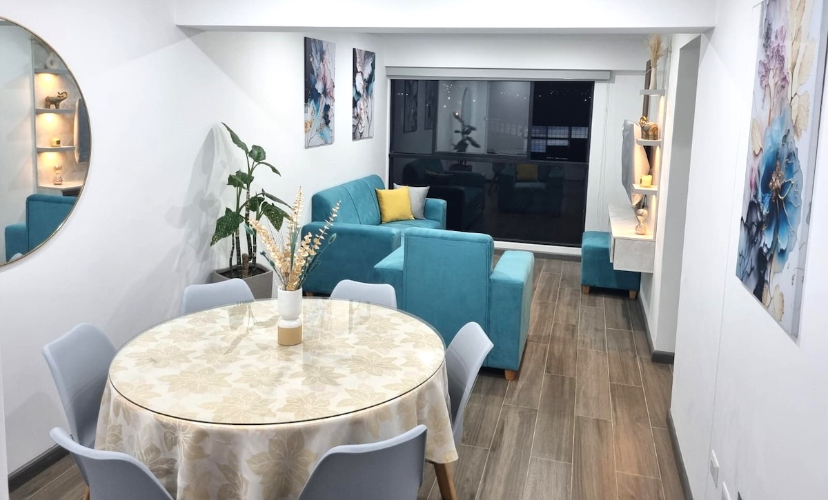 ✨ Nyd dit ophold i Tacna i denne rummelige og moderne lejlighed. Kun 7 minutter fra Plaza de Armas, i et boligområde, tæt på butikker og parker. Perfekt til familier, vennegrupper eller forretningsrejsende. Vores bolig ligger på tredje sal og kombinerer et moderne design med en hjemlig atmosfære med en kapacitet på 4-8 gæster. Få alle bekvemmelighederne til et uforglemmeligt ophold i byen! ✨