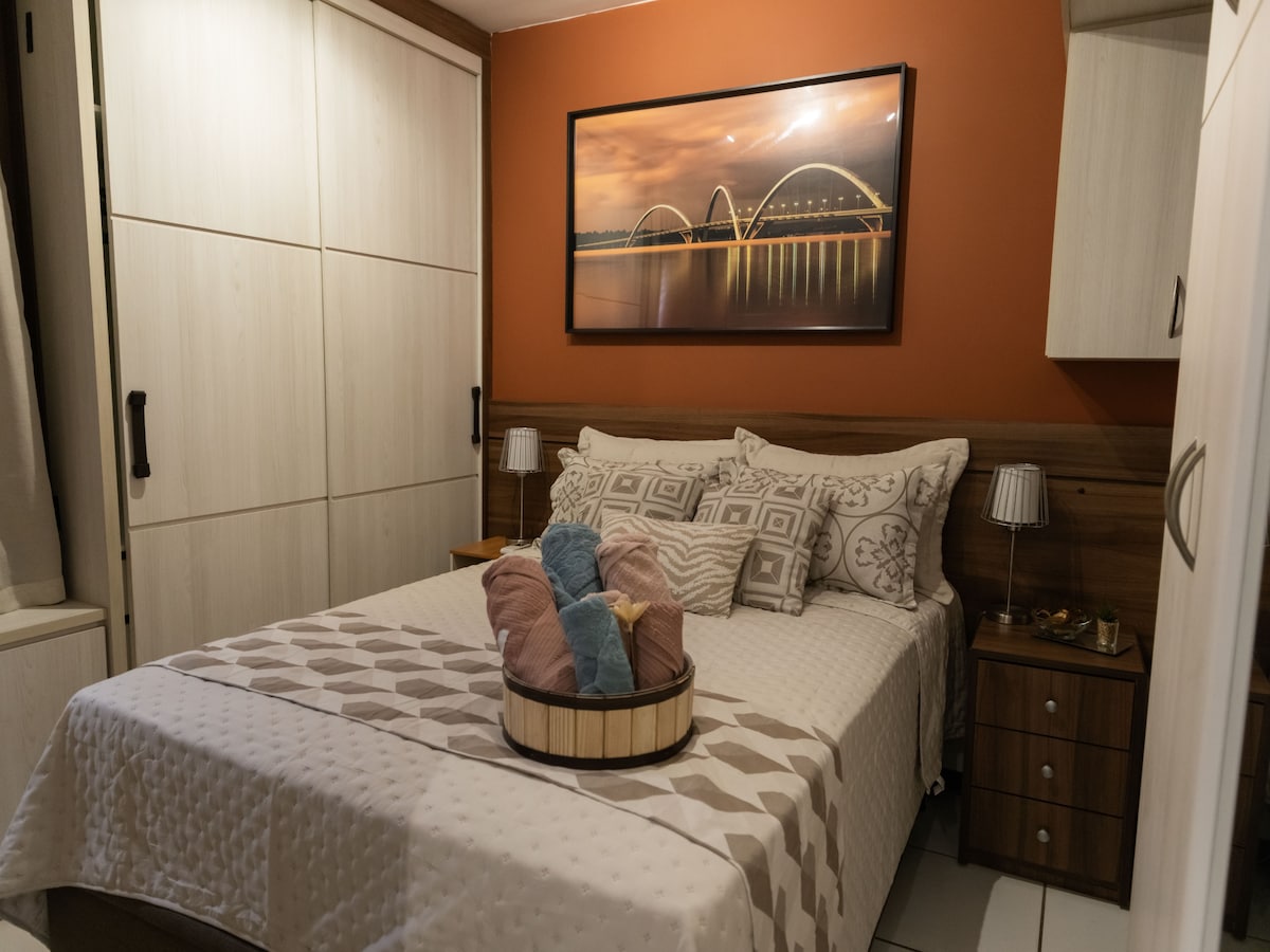 Super dejligt sted, hyggeligt og komfortabelt sted, indrettet og med alle møbler til din rådighed. Værelset har tv med hjemmebiograf, kogeplade, mikrobølgeovn, køleskab, vaskemaskine, klimaanlæg (ventilatorer og varme), kassemadras, blandt flere andre faciliteter, som du opdager under dit ophold. Smuk udsigt. Ved siden af metroen. Supertranquila nabolag. Tæt på markeder, apoteker, grønne områder, Águas Claras park, barer og restauranter. Alt er designet til, at du får den bedste oplevelse.