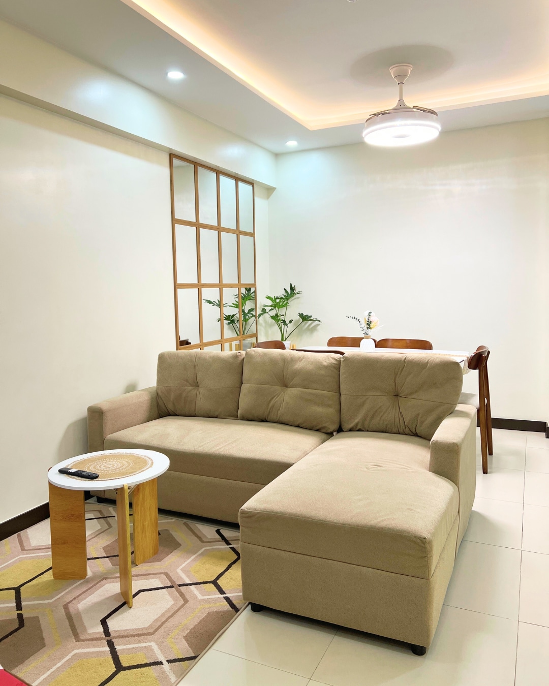 Perfect for mid/long-term stays — complete comfort awaits! 💻 Up to 300Mbps Fiber Wi-Fi + Workspace ☕ Free Coffee, Light Brekky & Snacks 📺 Netflix, Prime & Disney+ 🏊♀️ Free Pool/Gym Access (3 pax) 🎲 Videoke & Board Games, Outdoor kid's playground, billiards (w/ a fee) ❄️ Aircon + Air Filter 🛁 Hot/Cold Shower, Bidet, Towels, Toiletries 🍳 Stove, Rice Cooker, Microwave, Coffee Maker, Ref, Dinnerware, cooking utensils 💧 Purified Drinking H20 🕯️ Diffuser, Alcohol 🖤 Blackout curtains