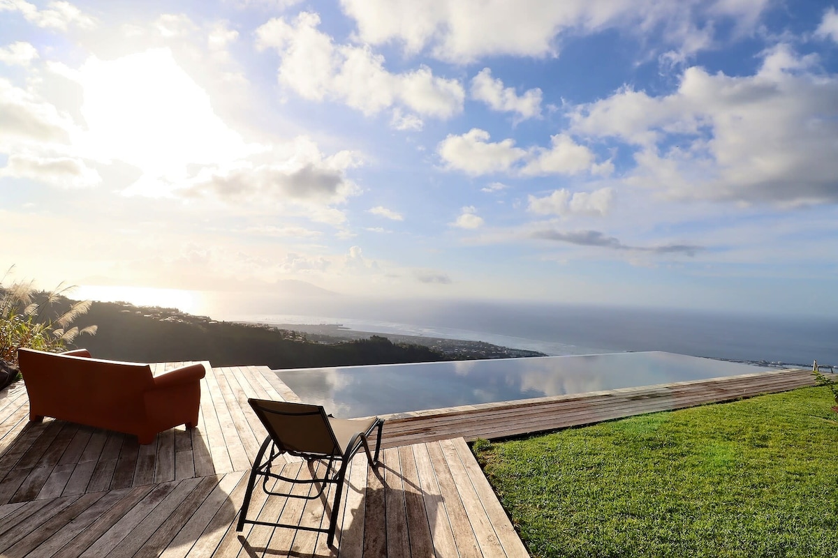 Hyggelig bungalow med en drømmeudsigt over havet og Moorea. En beroligende ramme, der er ideel til familieophold med venner eller romantiske ophold. Slap af på liggestolene i poolen. Nyd de spektakulære solopgange eller solnedgange, og se den utroligt stjerneklare himmel. Bungalowen er bygget i vores have, ikke overset af vores hus. Ejendommen ligger på højderne i Punaauia i en rolig og sikker bolig. Det er nødvendigt at leje en bil.