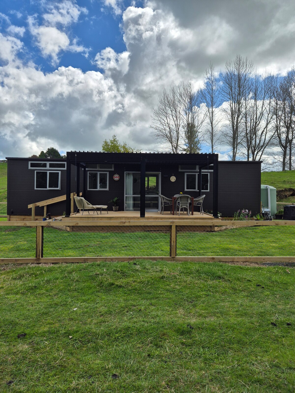 Vores selvstændige hytte ligger i vores landlige, modne have og er omgivet af landbrugsjord lige ved State Highway 1. Vi er 15 minutter fra centrum af Taupo med alle turistattraktioner, golfbaner og vores smukke sø 10-15 minutters kørsel væk. Det er 50 minutters kørsel til Rotorua og 90 minutter til skiløjperne. Slap af i vores hyggelige hytte, efter du har udforsket det smukke Lake Taupo-distrikt eller besøgt det for at arbejde eller lege. Hytten er privat oppe fra hovedhuset med nem parkering.