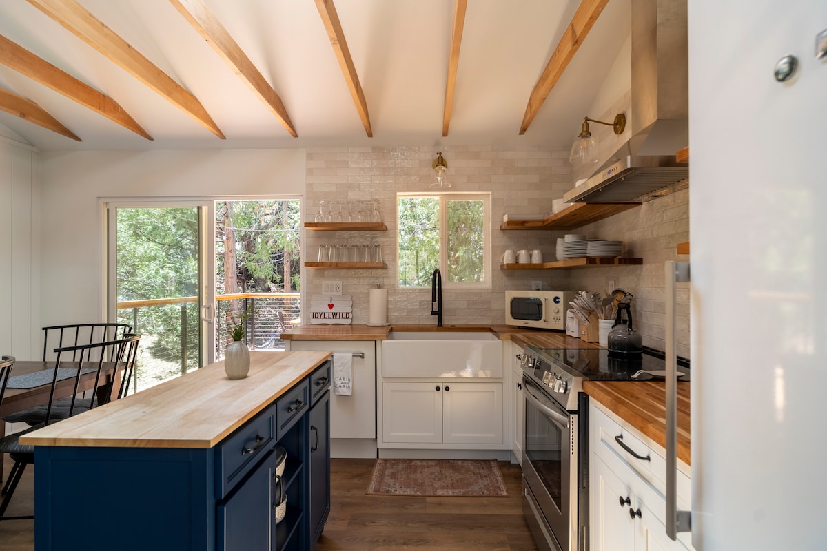 Træd ind i Cedar Treehouse, og oplev bjergene i en kurateret bolig med en storslået udsigt over Lily Rock og den omkringliggende skov. Ideelt beliggende tæt på byen, kun 10-15 minutters gang for at udforske de lokale butikker, restauranter og kunstgallerier. Lidt over to timer fra Los Angeles eller San Diego og en time fra Palm Springs kan du nyde vandreture i verdensklasse, betagende udsigter og alt det, som den unikke og bevarede by Idyllwild har at byde på. Badeværelserne blev ombygget i 2023 og køkkenet i 2025.