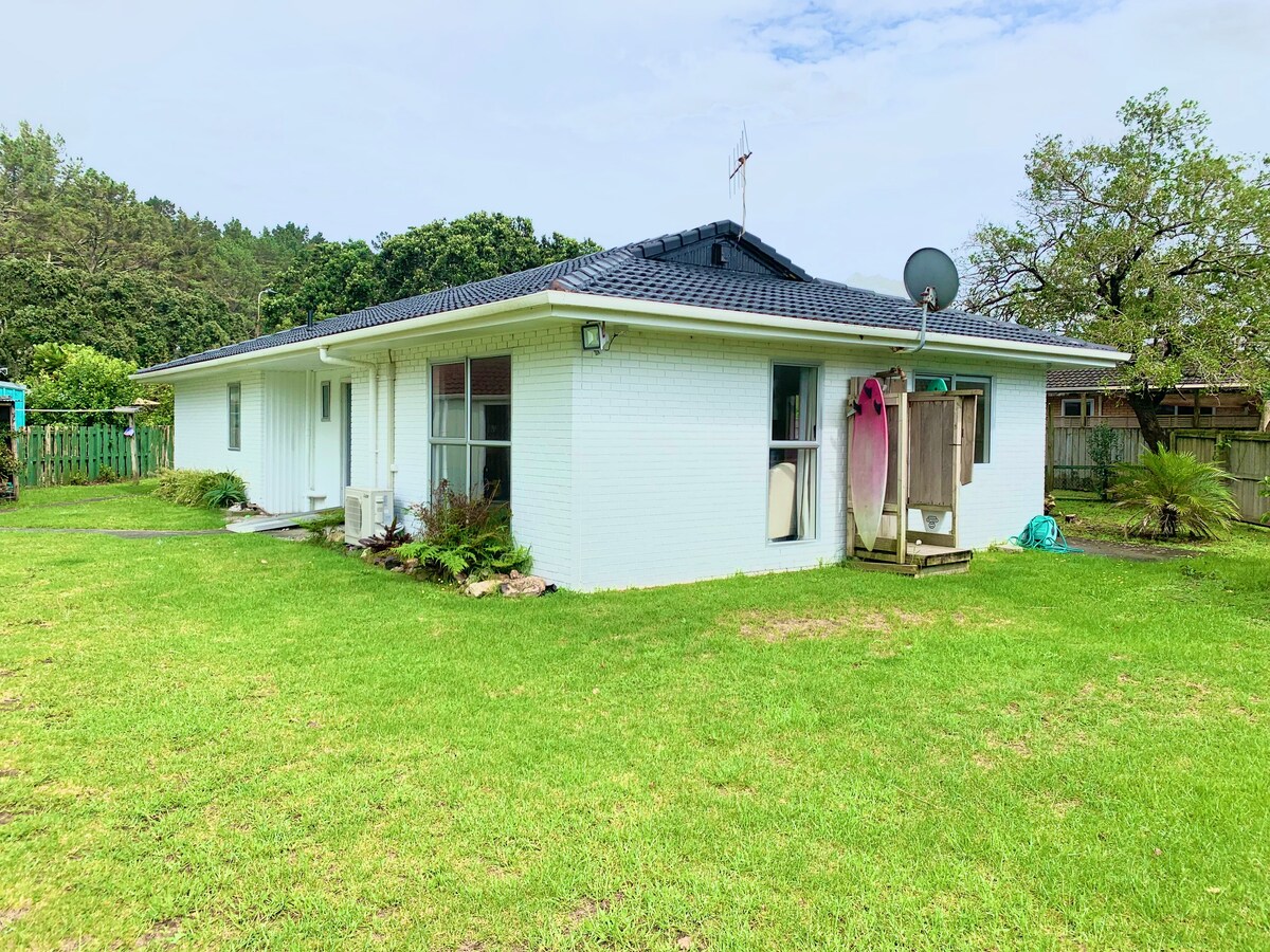 Dit tropiske skjulested venter! 🌴 Banana Hut er et lyst, privat og romantisk tilflugtssted i den fantastiske Taurikura Bay med magisk udsigt over Mount Manaia. Nyd dit eget spabad, skyl af under det varme udendørsbrusebad, eller slap af i saunaen. Cykler og kajakker er klar til at udforske, og stranden ligger kun 5 minutters gang væk. Surf, tag på vandretur, fisk, eller slap af, og lad naturen genoprette dig i dette fredelige kystparadis omgivet af palmer, fuglesang, solskin eller under stjernerne.