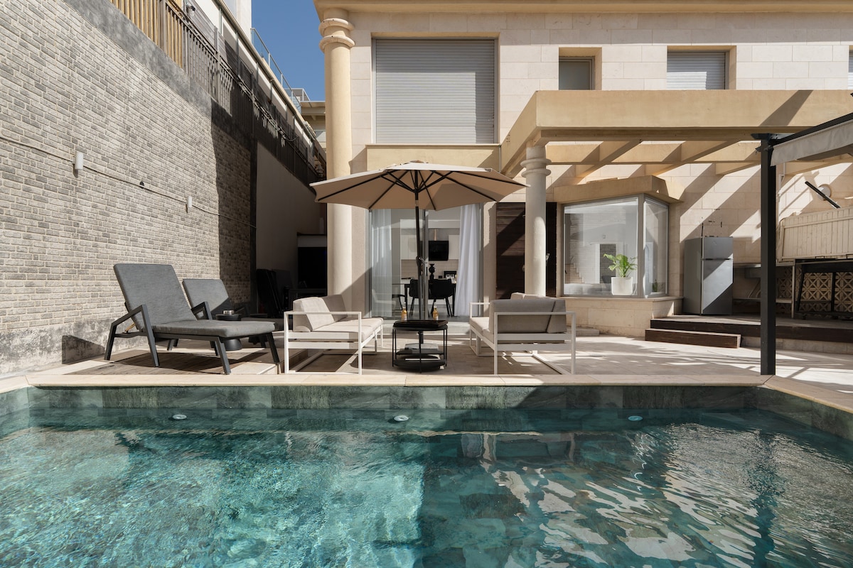 En nyoplyst og luksuriøs ferielejlighed i et nyt arkitektonisk design, især for par og familier . 5 minutters kørsel fra havet centralt beliggende i nærheden af supermarked og kommercielt centrum, rolig beliggenhed med masser af parkering meget tæt på ejendommen . En forkælende privat gårdhave med et privat poolområde og en stengrill, du er velkommen til at nyde en luksuriøs familie eller romantisk ferie, en privat have uden naboer, der ser dig , fuldstændig privatliv! • Fuldt udstyret ferielejlighed til en familieferie og par op til 6 personer • Privat have, opvarmet pool med professionelt grillboblebad og opholdsområde • Boutique-suite