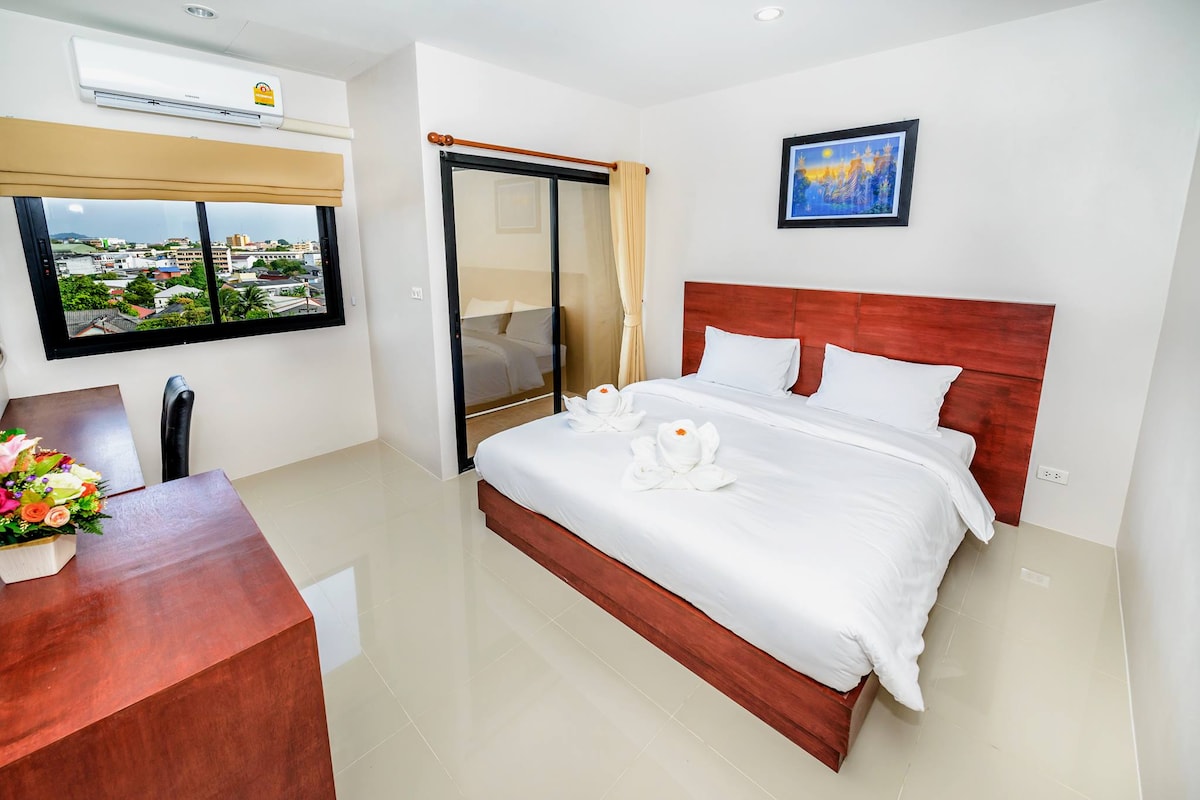 Det ene signatursted i Phuket centrum, hvor du nemt kan komme overalt. Det er et roligt sted, omgivet af bjergudsigt, der får dig til at slappe af i hvert øjeblik af dit ophold. 📍Fremhævet område - 5 min. gang til Bangkok Hospital - Kør 6 minutter til Chillva Night Market - Kør 10 minutter til Sport Club - Kør 10 minutter til Central Shopping Center - Kør 10 minutter til Phukets gamle bydel - 25 minutter i bil til Patong Beach #Gratis Wi-Fi #Fuldt udstyret #Månedligt ophold, eksklusive el- og vandafgift