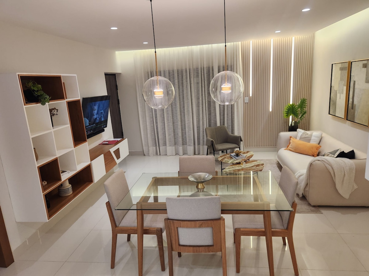 Velkommen til vores luksuriøse tilflugtssted i den pulserende by Santiago i Den Dominikanske Republik! Vores moderne luksuriøse lejlighed ligger i hjertet af Cibao og tilbyder den perfekte blanding af komfort og sikkerhed til dit ophold. Inklusive pool, fitnesscenter, privat balkon, privat parkering, sikkerhed på stedet 24/7 og 5G Wifi. Praktisk beliggende få minutter fra indkøbscentre, restauranter, natklubber, supermarkeder, hospitaler og en række faciliteter, hvilket sikrer nem adgang til alt, hvad du har brug for til et mindeværdigt ophold.