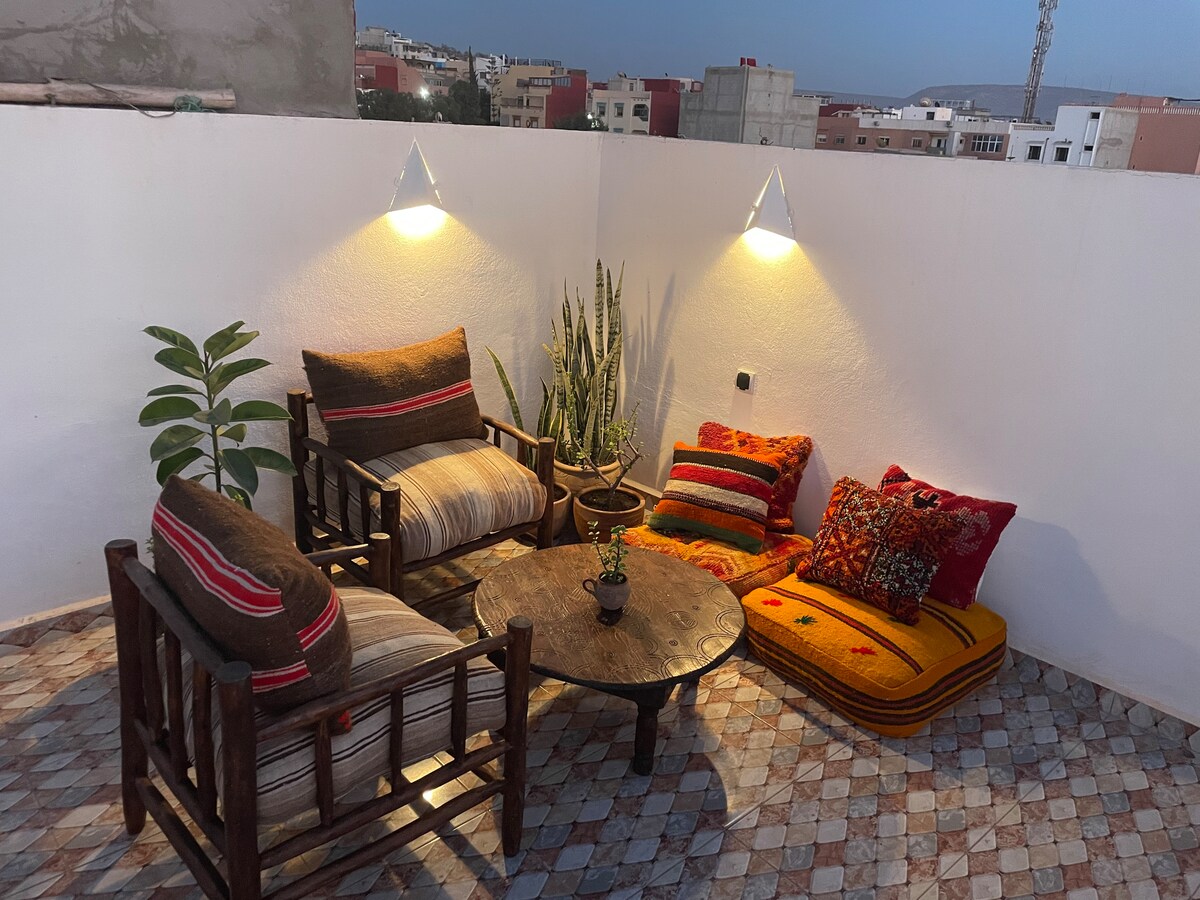 Vi er meget glade for at tilbyde dig en lejlighed, der repræsenterer vores Berber-kultur med lidt modernitet, det er en følelse af tusind og en nat. Nyd et uforglemmeligt ophold i vores meget indbydende lejlighed og vores fantastiske terrasse med en fremragende udsigt over havet, især surfstedet Banana Point ligger i bjergene i Tamraght.