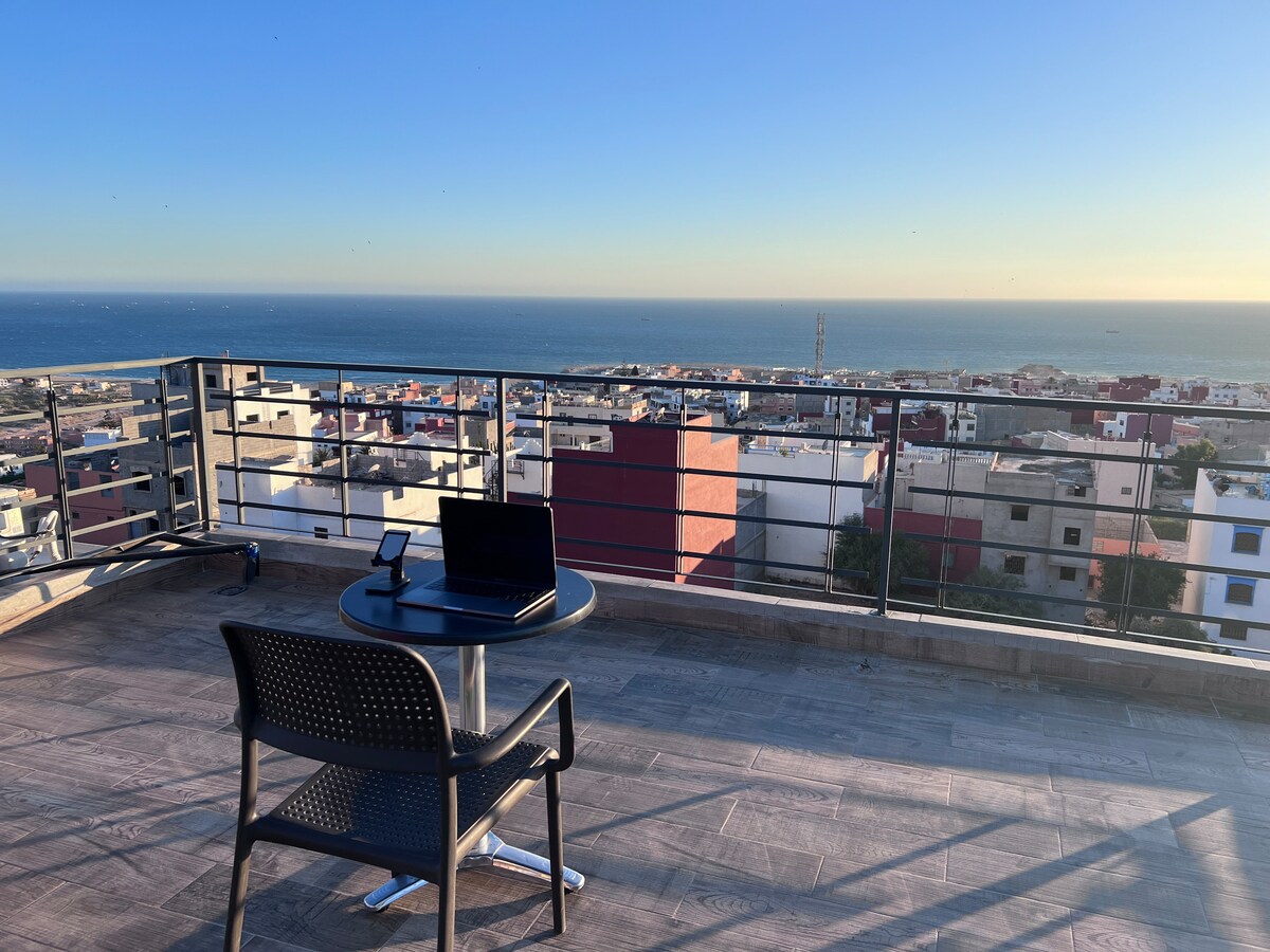 Velkommen til vores bygning med seks lejligheder i landsbyen Tamraght (10 minutter fra Agadir), 5 minutter fra Imourane-stranden (til fods). Vores bygning er perfekt beliggende, så du kan nyde bølgerne i Atlanterhavet samt et roligt og fredeligt boligmiljø. Du kan også nyde den fælles terrasse med panoramaudsigt over landsbyen og havet.