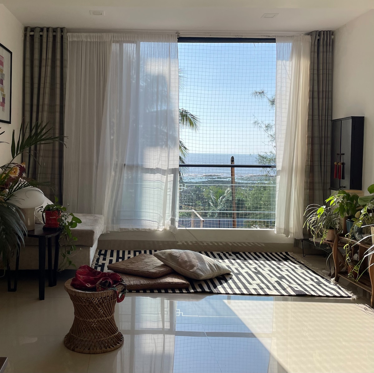 Nyd en stilfuld oplevelse i dette centralt beliggende hus, der ligger et stenkast fra Kharghar-bjergene. Det er meget tæt på både Utsav Chowk og Shilp Chowk. Det ligger på 23. etage og giver en fantastisk udsigt over bakkerne og byen, og alligevel vil det give dig den fredfyldte pause, du fortjener. Stedet kan prale af et projektorrum fyldt med en soundbar, Amazon fire stick og de fleste OTT'er, så man kan slappe af og nyde en aften med film og sjov.