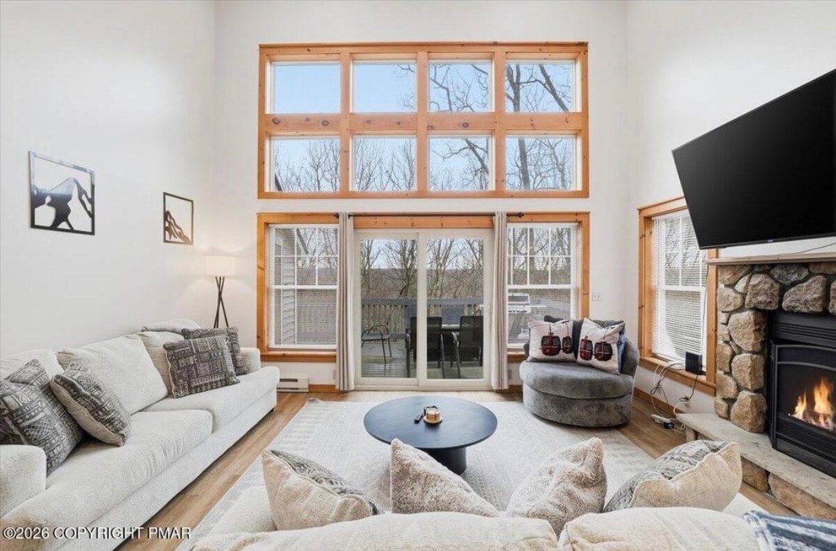 18 in of snow!!! 10 miles to Camelback. Welcome to The Blue Canoe, where lakefront luxury meets mountain adventure. Perfectly located near premier skiing this retreat offers the best of all seasons—kayak through misty mornings, relax at the community’s beach or pool, or enjoy serene afternoons on the water. Inside, indulge in a private spa-inspired suite, complete with a spacious two-person shower and relaxation room. Evenings bring cozy fireside gatherings, hot tub soaks under the stars.