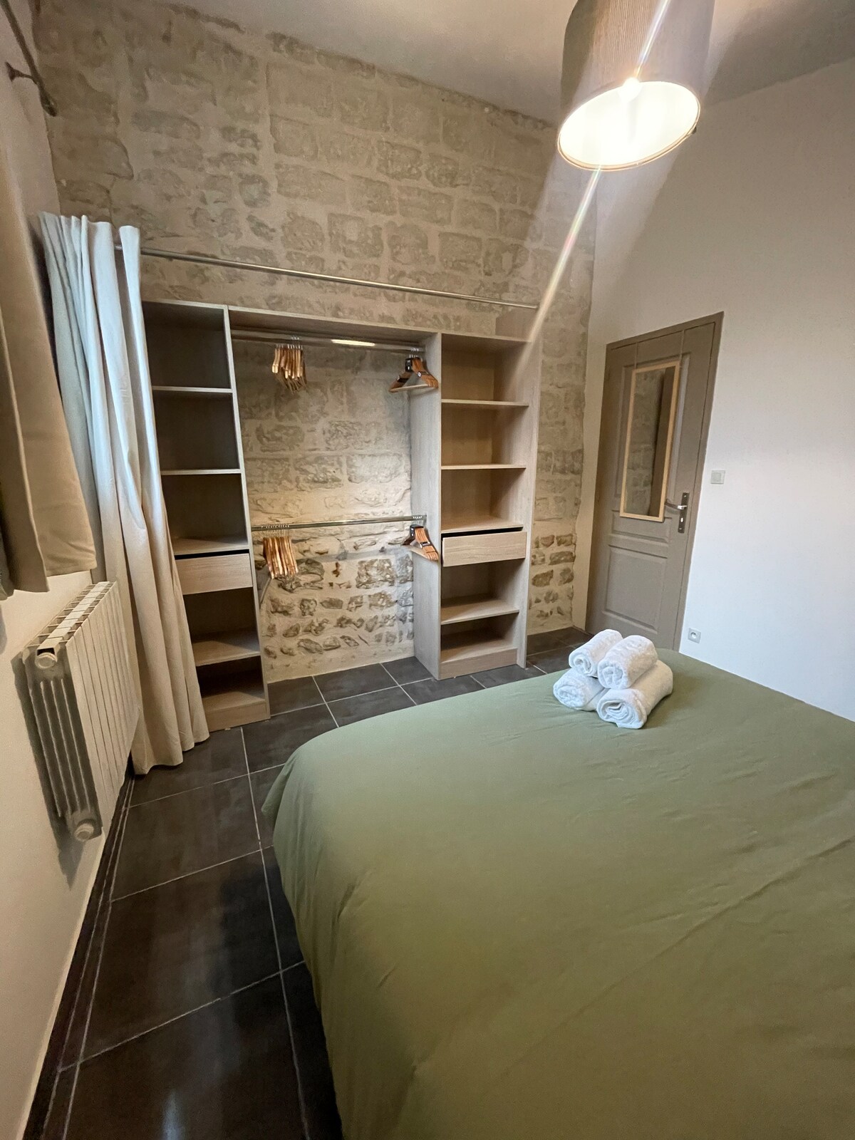 Denne lejlighed med synlige sten på 2. og øverste etage i familiebygningen. Udstyret køkken, separat toilet og bruser. i et meget roligt område tæt på alle faciliteter (Intermarche, bank, bageri, restauranter ets...); centrum, marina; busstoppested (Nîmes - Beaucarie- Avignon) ligger to minutters gang væk. Der er plads til op til seks gæster. For dit ophold er der sengetøj, håndklæder (5 €/parti) er valgfrit.