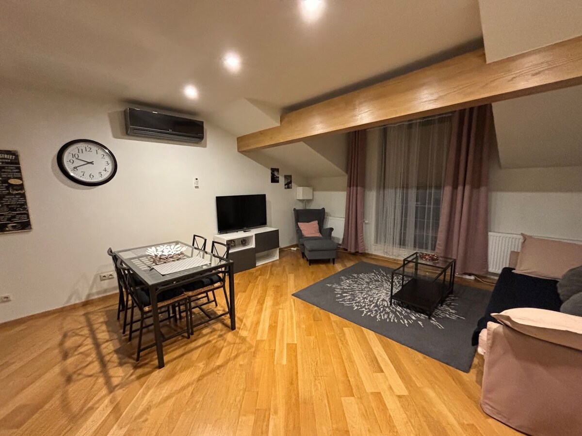 Kafka Apartment ligger kun en kort gåtur fra den gamle bydel, og alle seværdigheder og attraktioner kan nås til fods. Vinduerne i lejligheden har udsigt over Park Piszczele, som er den centrale del af byen. Lejligheden er veludstyret (kaffemaskine, opvaskemaskine, vaskemaskine, strygejern, anti-allergi ark, Wi-Fi, tv, naturlige kosmetik og vandfiltreringssystem). Lejligheden ligger i stueetagen og har 2 soveværelser, separat køkken, badeværelse og gratis offentlig parkering.