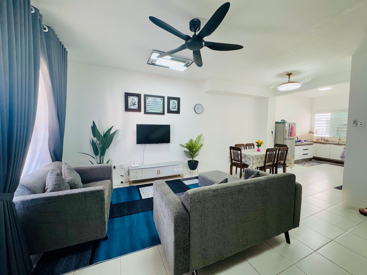 Relax with the Whole Family at Our Cozy Terrace Homestay! Enjoy comfort in our spacious 3-bedroom, 2-bathroom terrace house, perfect for families, small groups, or business travelers. With 1071 sq. ft. of space (1,540 sq. ft. including the car porch), our home offers a relaxing retreat. Designed as your “home away from home,” we prioritize cleanliness, comfort, and a halal-friendly environment, ensuring a peaceful and memorable stay for your trip.