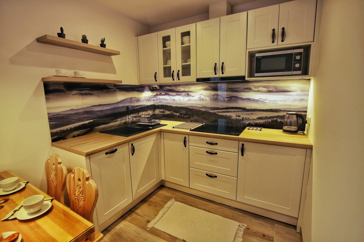 Vi tilbyder en komfortabel lejlighed til to personer, med fuldt udstyret tekøkken, privat badeværelse med bruser, tv med Netflix-funktion, internetadgang og balkon. Gæsterne har også adgang til en kaffemaskine og privat parkering på ejendommen. Lejligheden ligger i en boligbygning med separat indgang. Området tilskynder til talrige gåture og cykelture. Zakopane - 15 km, Termy Szaflary, Gorący Potok - 4 km, Kotelnica Białczańska 12 km. Vi inviterer dig :)