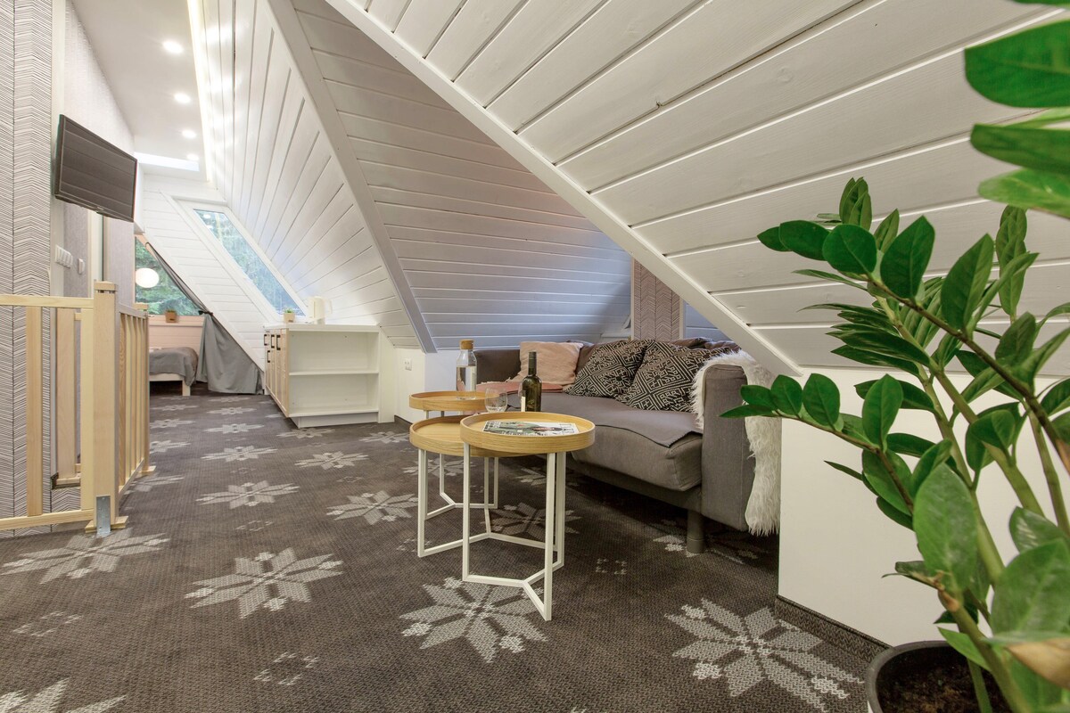 Kære gæster! Bjergmezzaninen blev bygget fra bunden for at skabe en unik atmosfære af et sted, hvor der vil være masser af plads og skønheden i finishens highlander-stil. I stueetagen i lejligheden er der en stor stue med en behagelig hvile, en biokomink, et tv og et køkken og et badeværelse. Lejligheden har også ubegrænset adgang til Netflix og wi-fi. I nærheden af lejligheden er der: -Kroupówki 400 m - Tog-/busstation 800 m -Żabka 200 m -Restaurant Villa Toscana 200 m