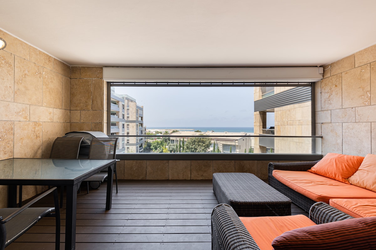 Vi tilbyder flere identiske lejligheder i bygningen! Beliggende i et helt nyt boligprojekt, få skridt fra stranden og den berømte TLV-promenade. Træd ud af bygningen til, hvad der er den bedste beliggenhed i Israel! Lejligheden har udsigt over havet fra næsten alle vinduer. Der er 2 rummelige soveværelser, skabe, stående bruser, badekar i fuld størrelse, forkælende stue med smart-tv, fuldt udstyret køkken, opvaskemaskine, Nespresso, spiseplads, aircondition, vaskemaskine, tørretumbler og meget mere! Parkering inkluderet!