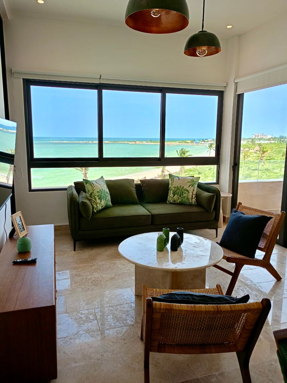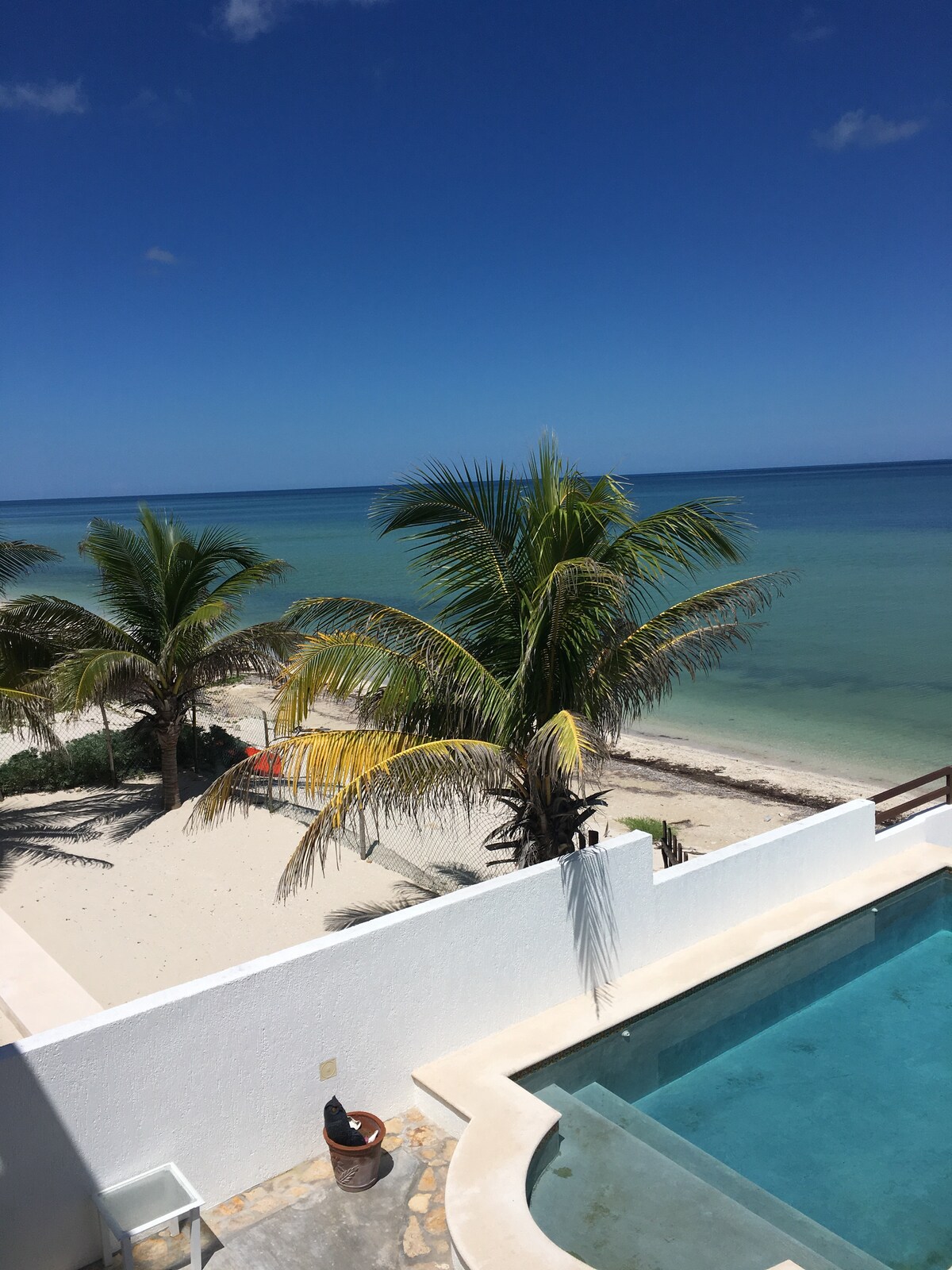 Nyd denne unikke og rolige bolig ved havet. Hvis du leder efter en fredfyldt ferie, er det lige, hvad du har brug for, at bo i denne nye og stilfulde lejlighed. Oplev følelsen af at vågne op til flyvende pelikaner og flamingoer, mens du nyder en kop kaffe på balkonen. Oplev de smukke solnedgange, og svøm i det varme turkisvand i Telchac Puerto. Lejligheden ligger på tredje sal, ingen elevator.