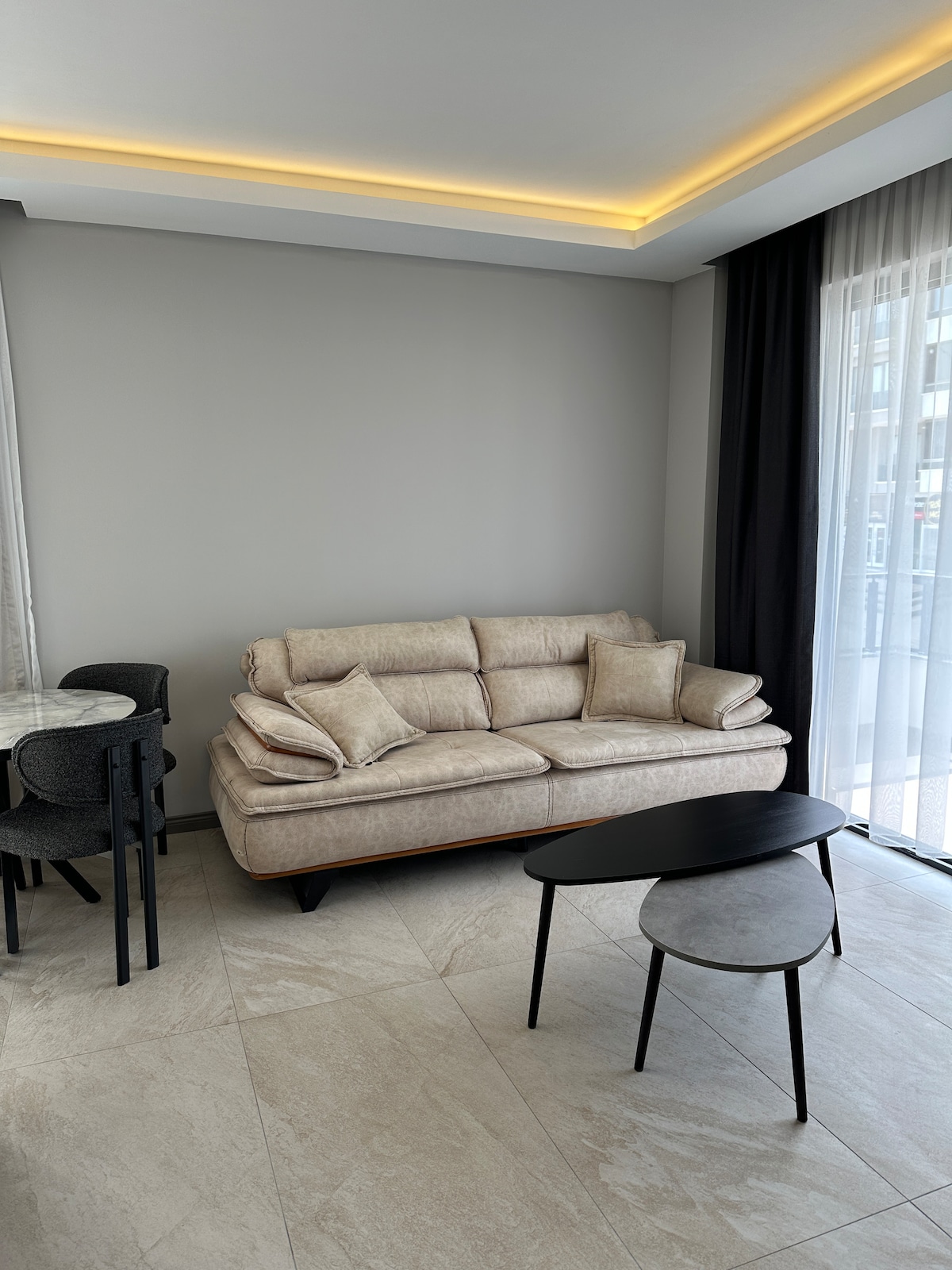 Denne moderne og omhyggeligt indrettede luksuslejlighed med 1+1 ligger i en af de mest behagelige dele af byen og er et ideelt valg for gæster, der leder efter en bolig, der tilbyder komfort og fred på samme tid. Så snart du forlader lejligheden, kan du nå kysten og strandene ved at gå kun 200 meter. Du kan tage dine morgenture med den kølige brise og lugten af havet. Legepladsen lige foran bygningen giver et sikkert og behageligt miljø, især for familier. Det ligger 5 km fra busstationen og 30 km fra lufthavnen.