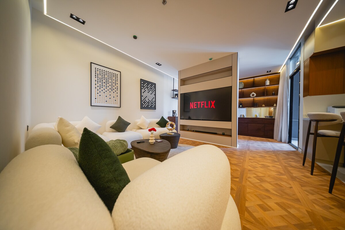 استديو انيق مع Netflix وشاشه 70 بوصه - حي راقي