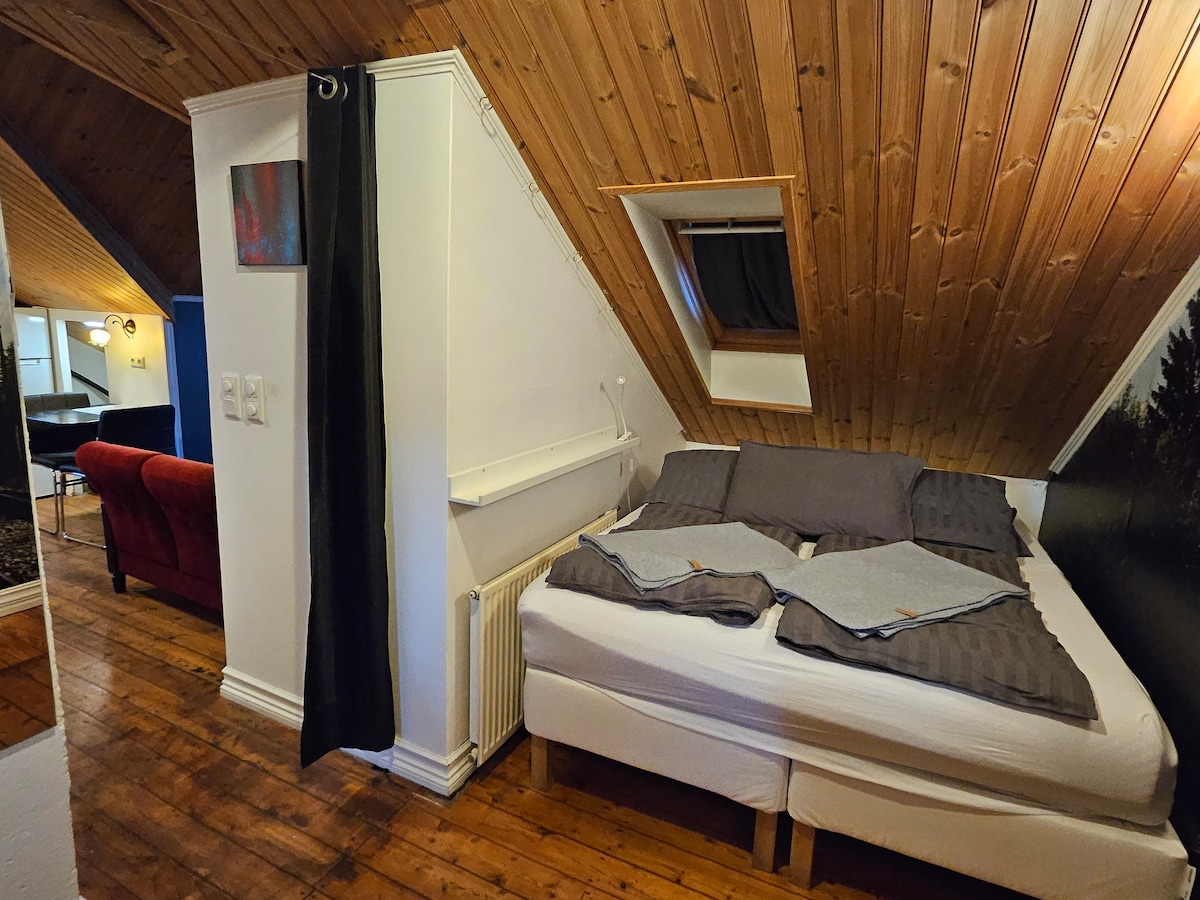 Hyggeligt loft i historisk træhus - centralt