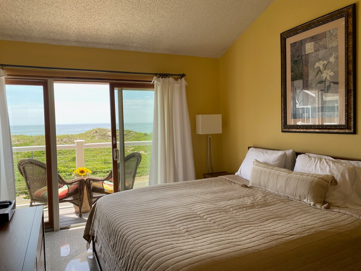 Perfect for a romantic getaway or a family vacation, our home is located directly across the ocean and just steps away from the path to the beach. Relax in our beautiful condo where you can unwind and take in views of the ocean while you dine on the deck or sip your coffee on the balcony of the master bedroom. The village of Montauk is just steps away where you will find restaurants, shops and local attractions. The unit has a designated parking spot, a fully equipped kitchen, A/C and Wi-Fi.