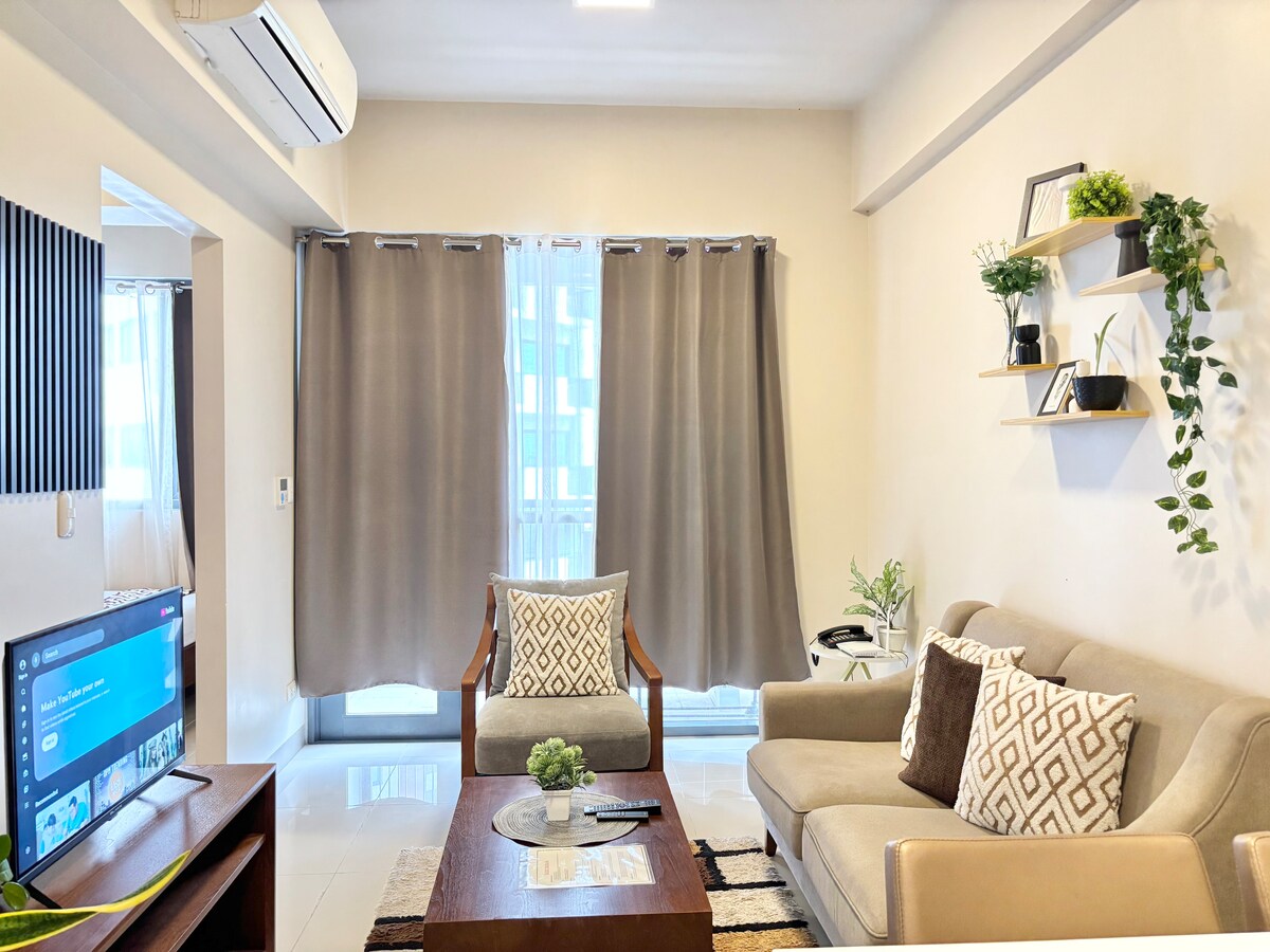 Slap af i denne helt hyggelige, moderne og livlige 1BR lejlighed, der er bekvemt beliggende i ONE MANCHESTER PLACE, Mactan Newtown, Lapu-lapu City. Hvor det er tæt på 5-stjernede resorts, restauranter, caféer og supermarkeder. - 10-15 min. kørsel fra Mactan Lufthavn - Smartlåsadgang - 50 Mbps Wi-Fi - Gratis Netflix - Fuldt udstyret køkken (VIGTIG MEDDELELSE: Gennemgå venligst ejendomsbeskrivelserne nedenfor, før du foretager din reservation)