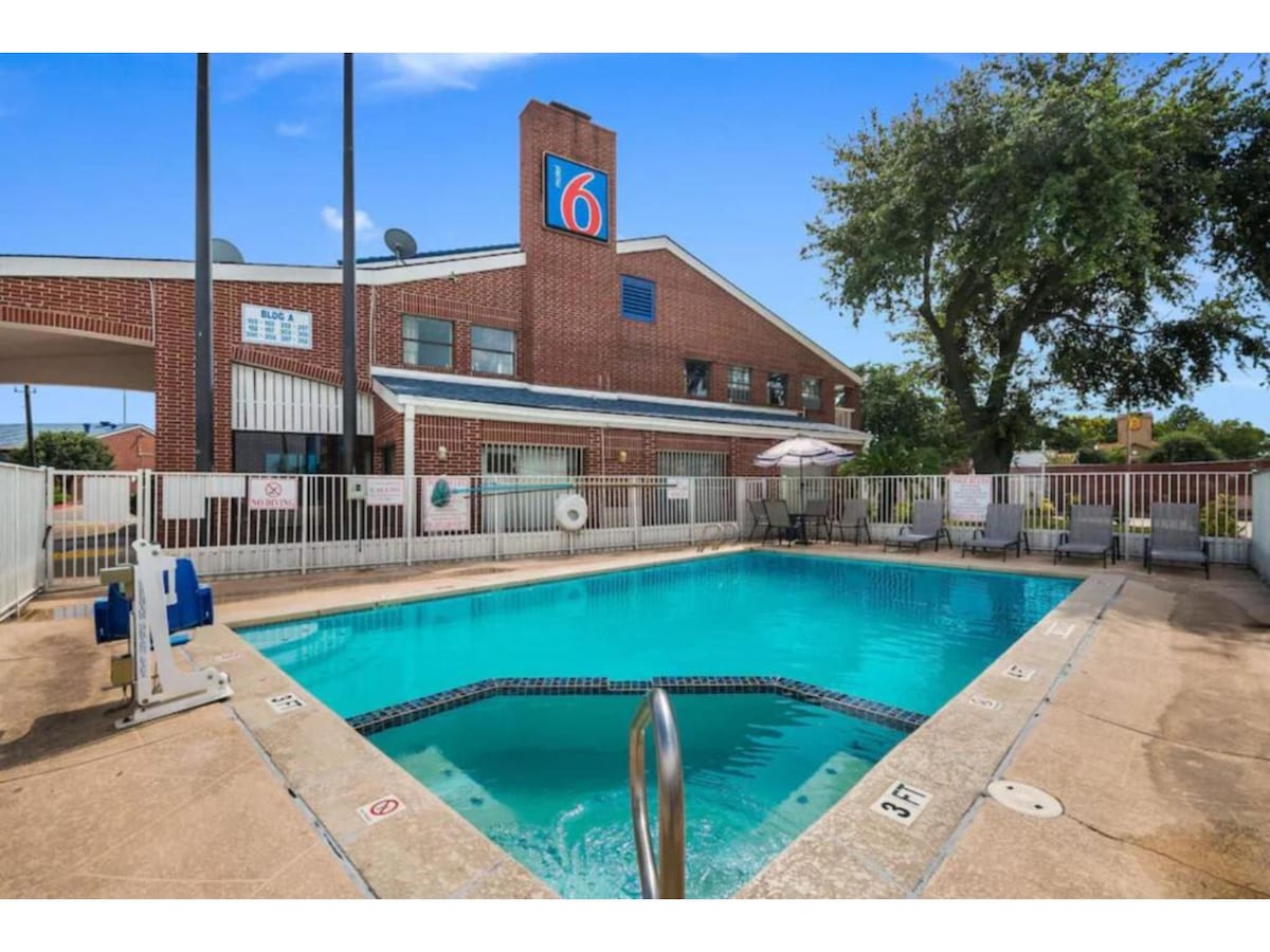 Dette er et hotel med professionelt personale og ledelse. Boligen blev for nylig bygget i 2019. Der er et fuldt serviceret køkken (ingen gryder/pander/fad/sølvtøj) med alle faciliteter i hvert rum. Dette værelse har en kingsize-seng for din komfort. Hele boligen er egnet til handicappede. Mindre end 10 minutter fra George Bush International Airport og mindre end 1,5 km fra Willowbrook-indkøbscenteret. Ingen kæledyr tilladt i hele boligen.