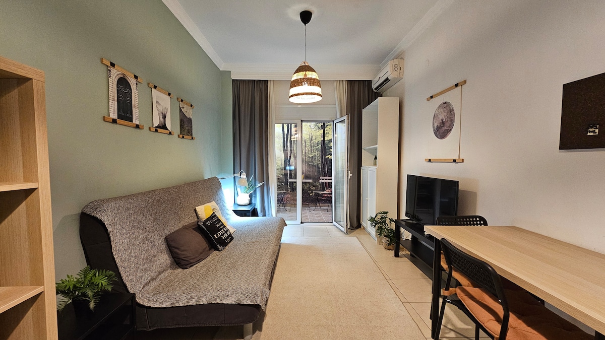 Trendy renoveret toværelses i hjertet af byen. Med alle faciliteterne i en moderne bolig. Autonom lejlighed som et fritliggende hus! Gratis parkering i bygningen og med en privat gårdhave! Blot et stenkast fra molen, den internationale messe, universiteterne, museerne og Det Hvide Tårn. Metrostoppestedet ligger 3-5 minutter væk. Meget tæt på tre byhospitaler. Med en 200 MBps internetlinje. Ideel til ophold, der enten er til underholdning eller forretning.