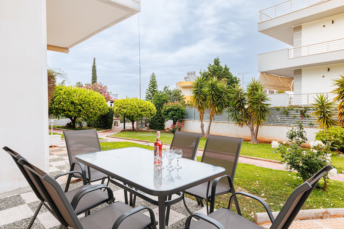 Det er en uafhængig og komfortabel lejlighed på 60 m2 med direkte adgang til en smuk have og en fantastisk udsigt over havet fra stuen og soveværelset. Beliggende i et meget roligt område i Artemida (Athen forstad) 1,8 km fra centrum, 15 minutter i bil fra lufthavnen og 20 minutter fra Rafina havn. Vores gæster kan nyde øjeblikke af afslapning mellem fly eller booke en hel ferie væk fra støj fra centrum, men tæt nok (1,8 km), hvis du vil have en restaurant eller en pub.