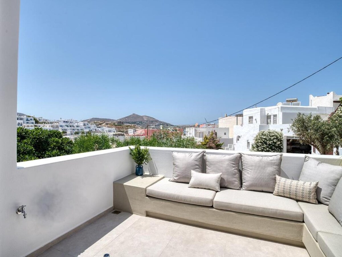 Den private maisonette ligger kun 7 min. gang fra Agios Prokopios strandområde og kan rumme 2 gæster. Den tilbyder indkvartering med aircondition, privat Wi-Fi, 42 tommer fladskærms-tv med Netflix, espressomaskine, fuldt udstyret køkken. Den har en queensize seng og en sovesofa, indendørs og udendørs siddeområde, hvor du kan slappe af og nyde den udendørs private jetbadekar-pool, men også panoramaudsigten over landskabet og delvist havet.