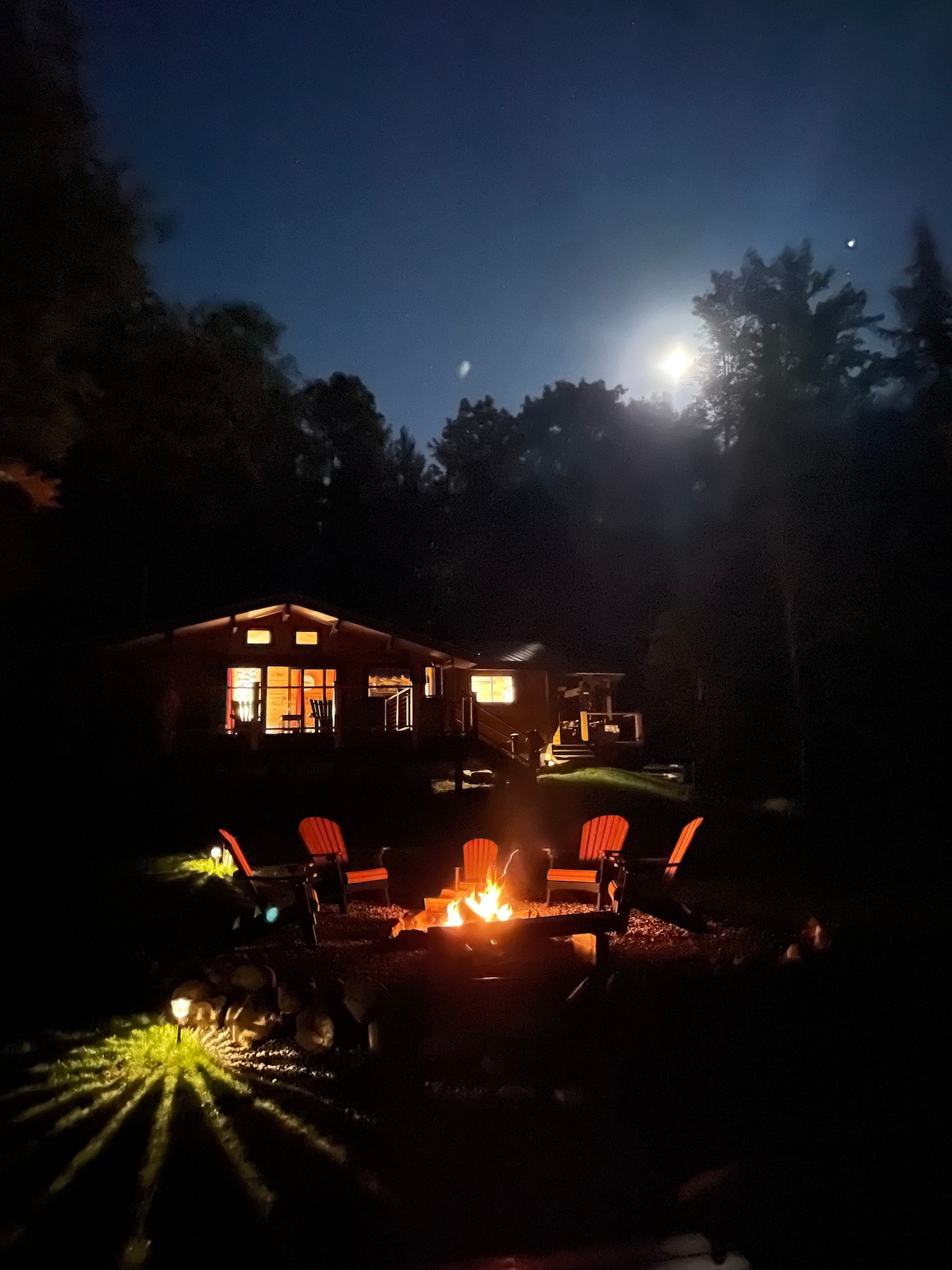 Hytten "Mellow Moose" er et roligt og fredeligt fristed, der ligger skjult i skoven. Tilbring dagen med at udforske regionen eller bare slappe af i naturen. Eftermiddage er gode til at læse en bog, da solen skinner gennem de store stuevinduer. Slap af på den afskærmede veranda foran huset og nyd en rolig aften med en drink. Eller nyd et lejrbål og se solnedgangen gennem træerne. Brug dette sted som din base under en skitur, eller som udgangspunkt for at udforske Schroon Lake, Brant Lake eller Lake George. (Ca. 30 minutter)