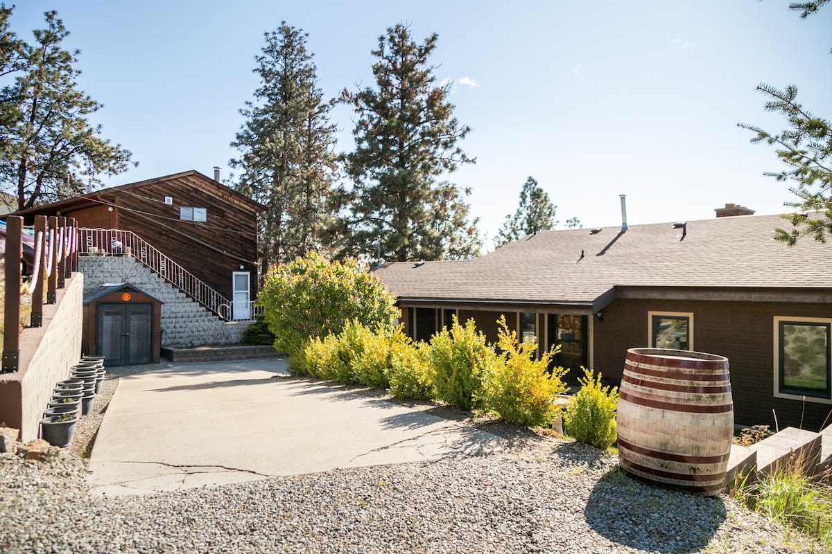 A relaxing retreat for couples, solos or business travelers. Above ground, private entry-self check in. Free parking. King bed, in suite laundry, Fast WIFI. Fully stocked kitchen- coffee, light grab and go breakfast included. Melt in the barrel sauna, then relax on a secluded, year-round sheltered patio with a fire table, cozy seating and barbeque all in a quiet, fenced back yard. 5 minutes from Highway 1, 10 minutes to downtown, 55 minutes to Sun Peaks. The perfect base for your next getaway.