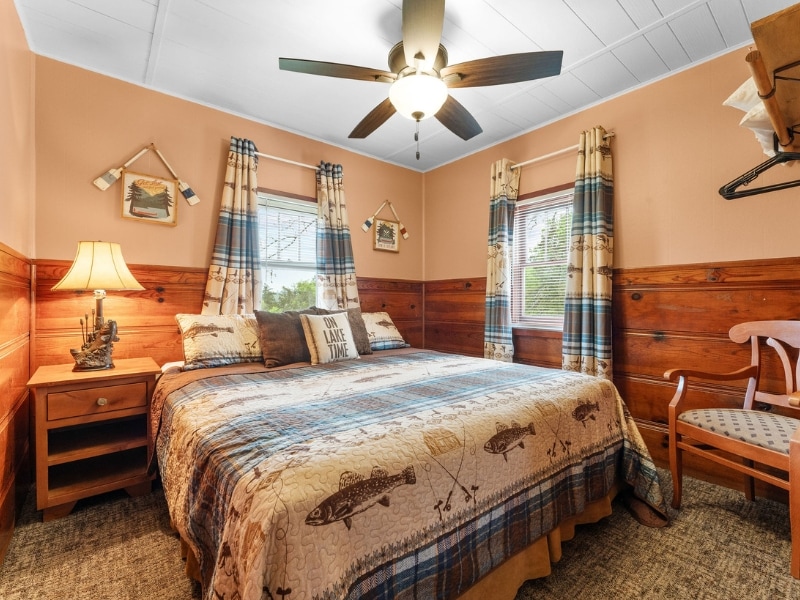 Cozy single room cabin with a shower bathroom and a lake view. The cabin sleeps four with a double bed and one queen sofa, and is located in Henderson less than a mile from Lake Norfork Marina. Although the cabin does not have a kitchen, it has a mini-fridge, microwave, coffeemaker, table and chairs, and a Webber grill. It also has a flat screen TV, NEXT w/movie channels, and free Wifi. This quiet location is easy to get to, yet close to hiking, picnicking, swimming, boating, and fishing.
