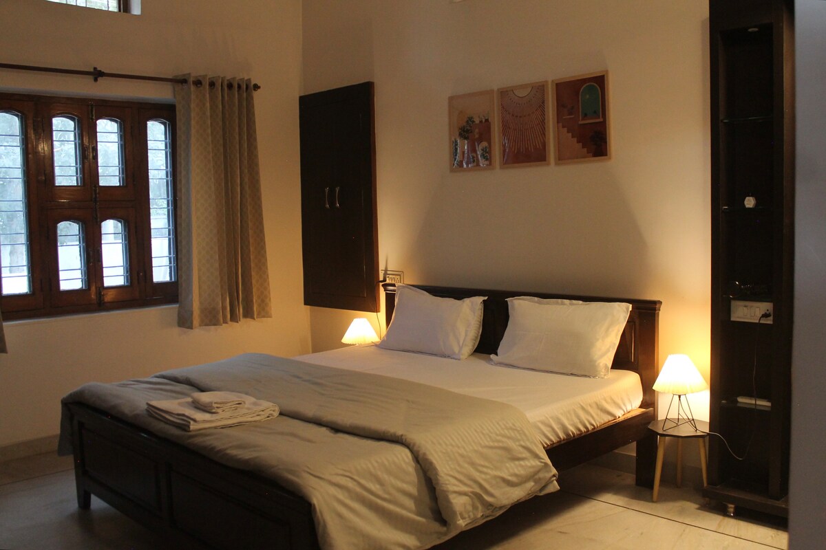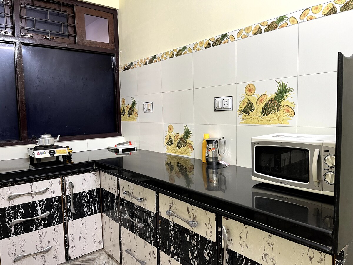 Rygning forbudt 🚭 og alkohol forbudt. Oplev Udaipurs magi, mens du bor i vores hus med to soveværelser, der er designet til en afslappende og mindeværdig oplevelse. Nyd en rummelig stue, der er perfekt til afslapning, et fuldt udstyret køkken til hjemmelavede måltider og to tilstødende badeværelser for ekstra komfort. Vores hjem ligger kun 5 km fra Udaipurs berømte seværdigheder, herunder Fateh Sagar-søen, Saheliyon ki Bari, Sukhadia Circle, Moti Magri, Neemach Mata-templet.