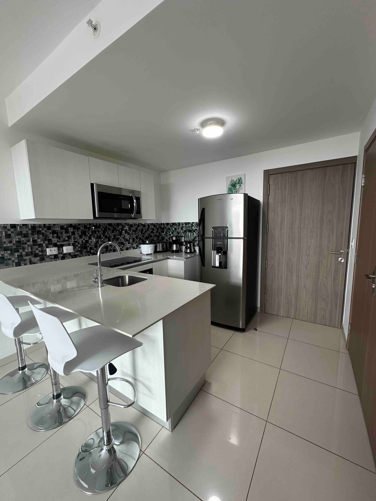 Nyd en stilfuld, central, rolig oplevelse 15 km fra lufthavnen og i udkanten af byen. Møbleret med fremragende smag, fuldt udstyret køkken, værelse med moderne indretning og superkomfortabel seng, med plads til at arbejde og gratis parkering døgnet rundt. Den ligger i et moderne tårn med swimmingpool, gastronomisk område (mexicansk, peruviansk, italiensk, kødmuligheder), gratis parkering, grillplads, zenhave, fitnessrum og privat mødelokale