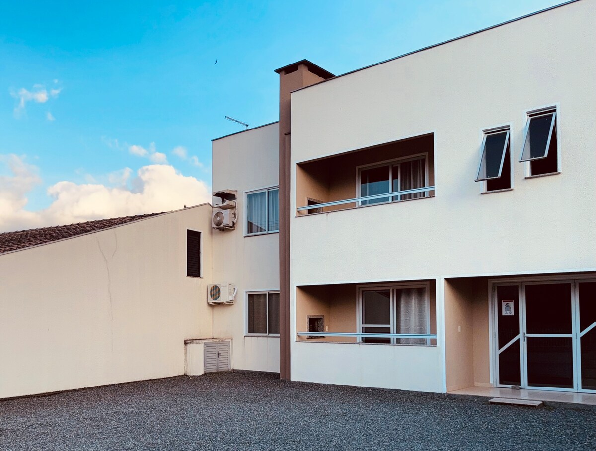 Komplet, rummelig og rolig lejlighed 1 km fra centrum af Timbó, tæt på flere naturlige attraktioner og turistcentre såsom Blumenau (32 km), Pomerode (22 km) og endda en strækning til Beto Carrero og Litoral Catarinense (ca. 100 km). Boligen har plads til op til 4 personer, så du og din familie kan føle jer hjemme. Beliggende i en lukket lejlighed og med en stor balkon med grillplads.