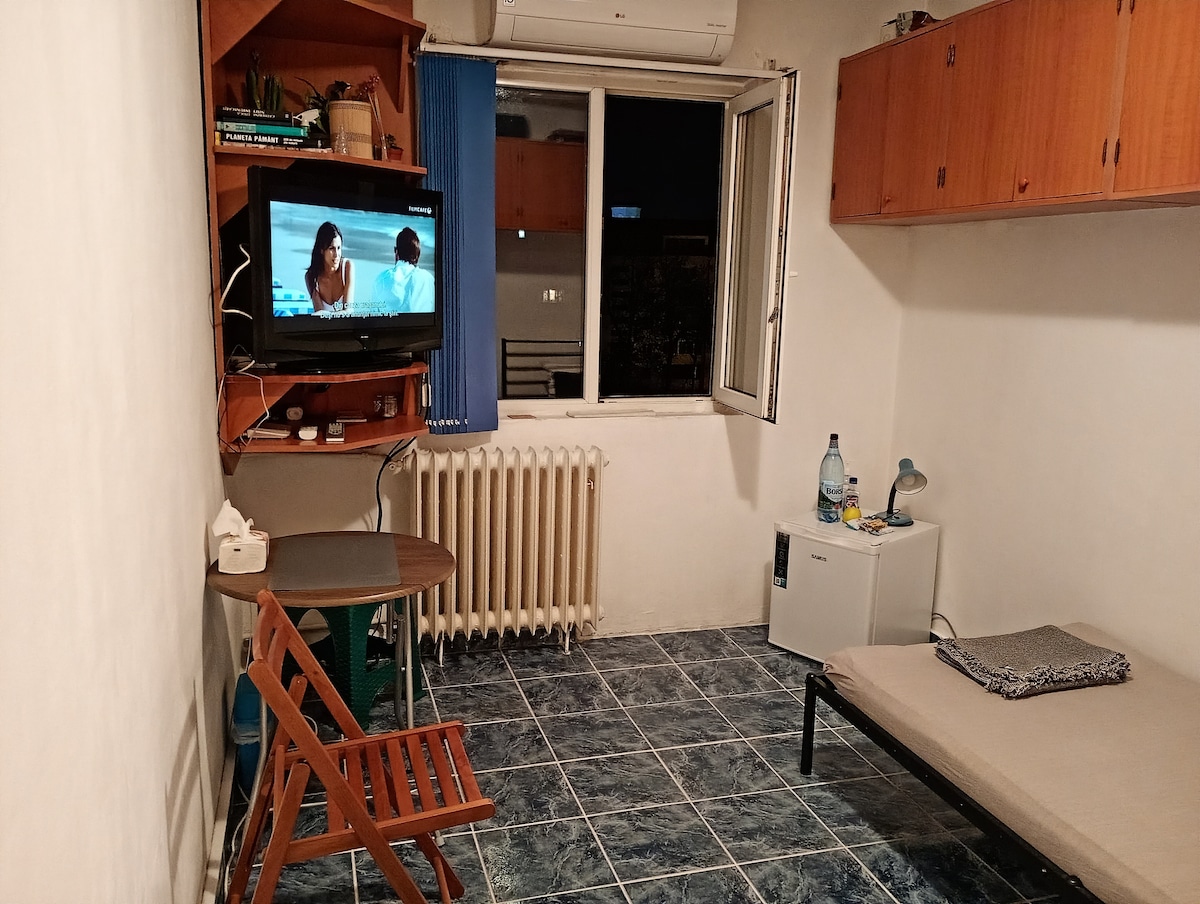 Lejlighed beliggende i et historisk hus/område tæt på centrum af Timisoara (Balcescu-området) , Det består af et åbent køkken med mini lving sofa , tv + et meget rummeligt soveværelse. Badeværelset er lille, men har de bare fornødenheder . Det ligger på en rolig afsides landing, hvor der er 1 anden lejlighed (kan bruges til rygning)