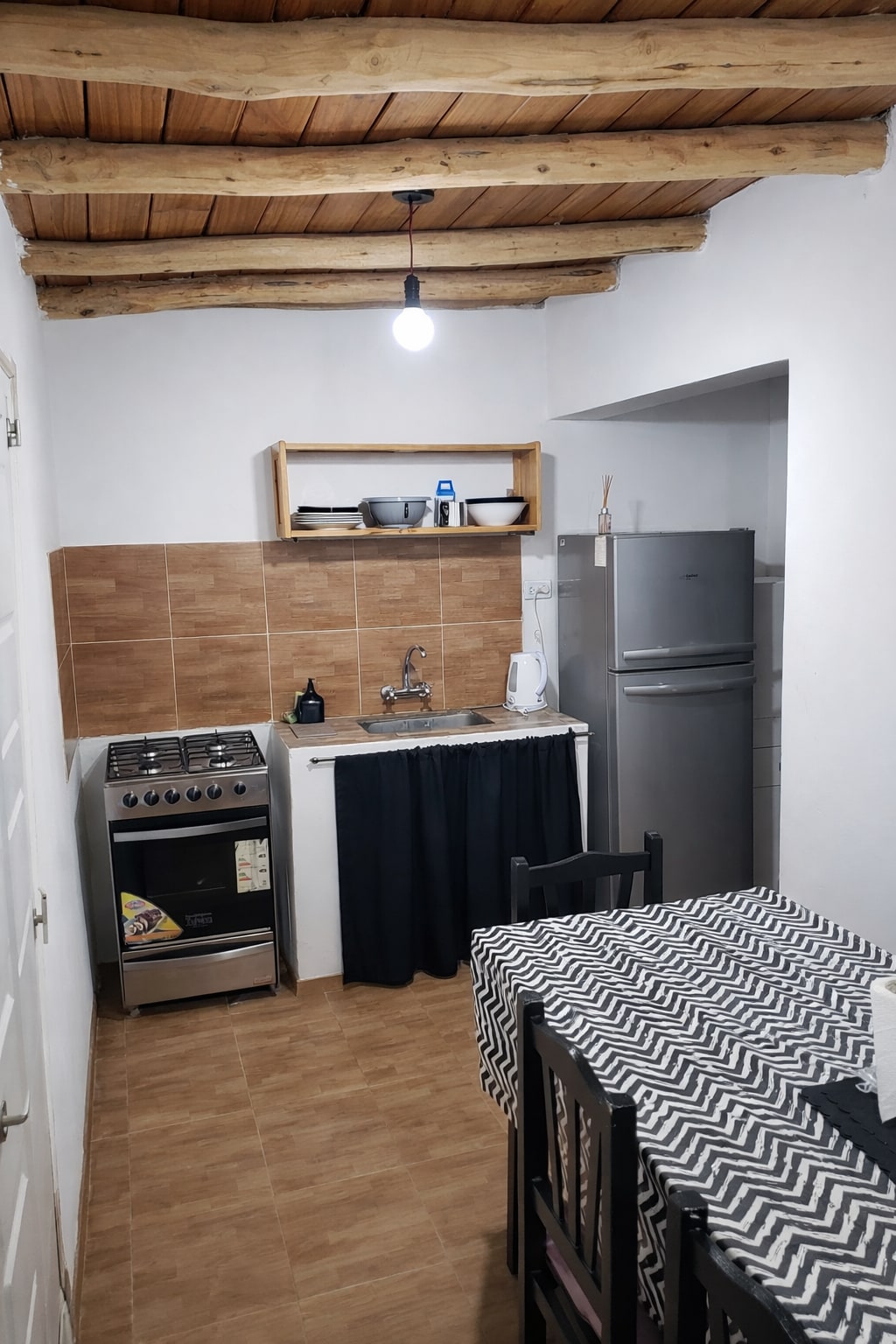 Hus til 5 personer i Tinogasta, 400 meter fra hovedtorvet. Der er spisekøkken, to soveværelser, badeværelse, vaskerum, terrasse og overdækket carport. Alle miljøer med aircondition, wi-fi og tv i køkkenet.