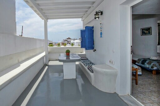 A unique, perfectly located studio (1 double bed) in the town (Chora) of Tinos island! Everything in need can be found literally at the doorsteps! It includes a private terrace with view at the port and the whole Tinos Chora. AC, coffee, and Internet are provided. Very close to the ship dock and the Church. Suitable for couples or two friends!